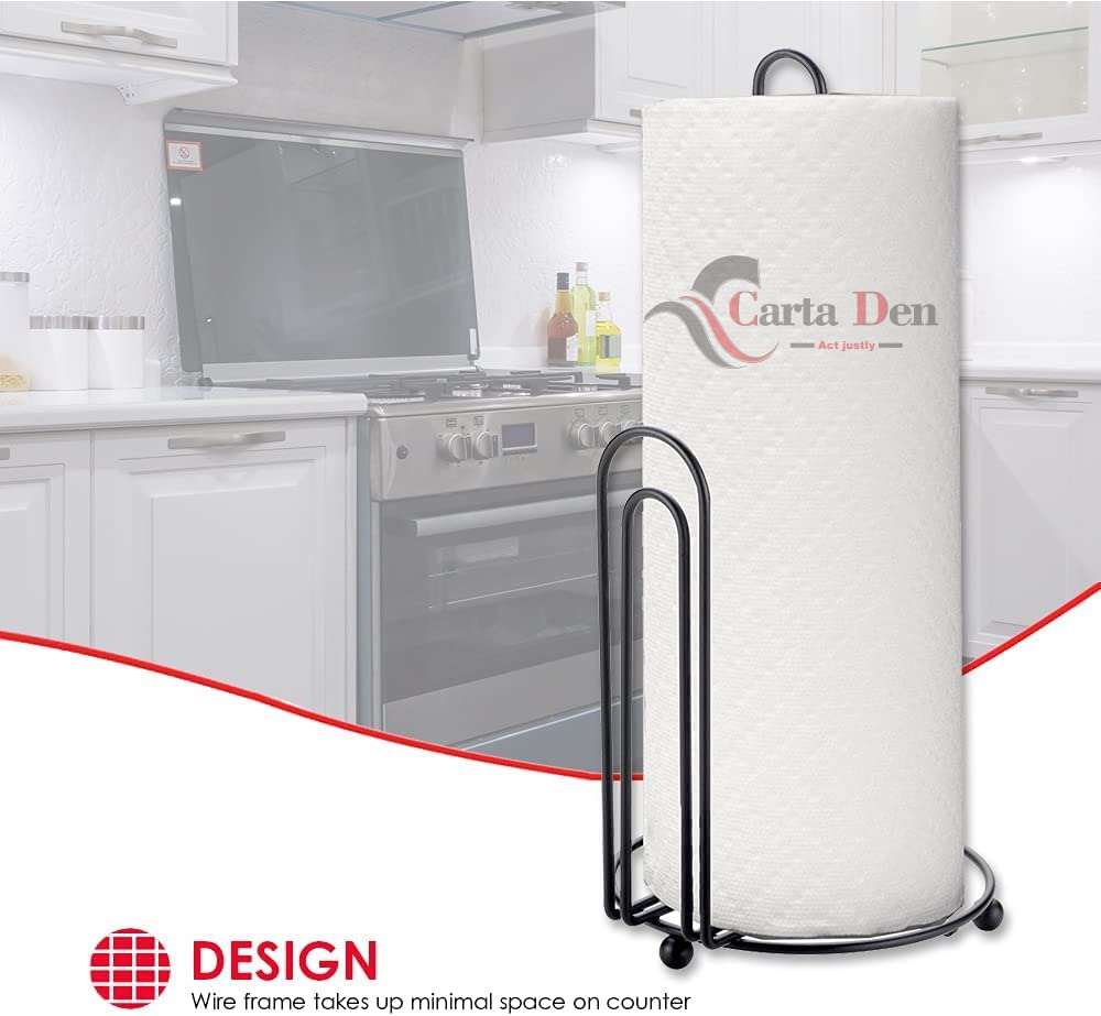 CartaDen Tissue Paper Roll Stand Organizer and Dispenser for Bathroom, Vanity, Shelf, Cabinet Organization – Tissue Paper. (Black U-Shape Set of 2)