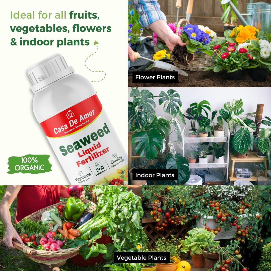 Casa De Amor Seaweed Liquid Fertilizer For Plants and home garden, 100% Water Soluble for Indoor and Outdoor Plants with Measuring Cup (500 ml)