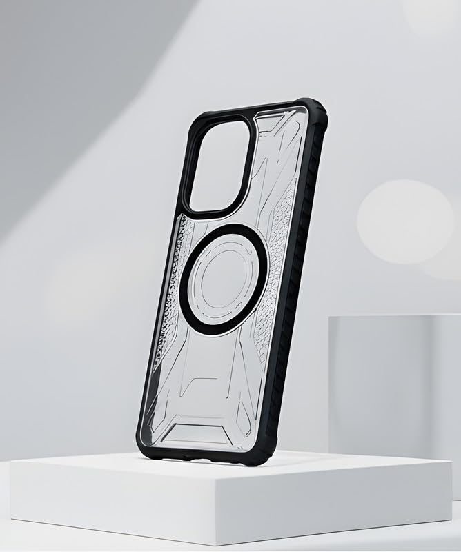 This protective case for your phone combines robust protection with modern functionality. The clear transparent back showcases your phone’s original design whilst the reinforced black bumper edges provide superior shock absorption against accidental drops and impacts. The ring is MagSafe compatible, allowing seamless attachment to magnetic car mounts and accessories. Precision-cut openings ensure full access to all ports, buttons, and the camera array without removing the case. The textured pattern on the clear back adds visual interest whilst improving grip. The raised bezels around the screen and camera module offer additional protection against scratches when placed face-down. This shockproof design incorporates air-cushion technology in the corners to disperse impact force effectively. The case maintains a slim profile despite its protective features, ensuring your phone remains pocket-friendly. The combination of durable materials and thoughtful design makes this an ideal choice for those seeking both style and protection for their device.