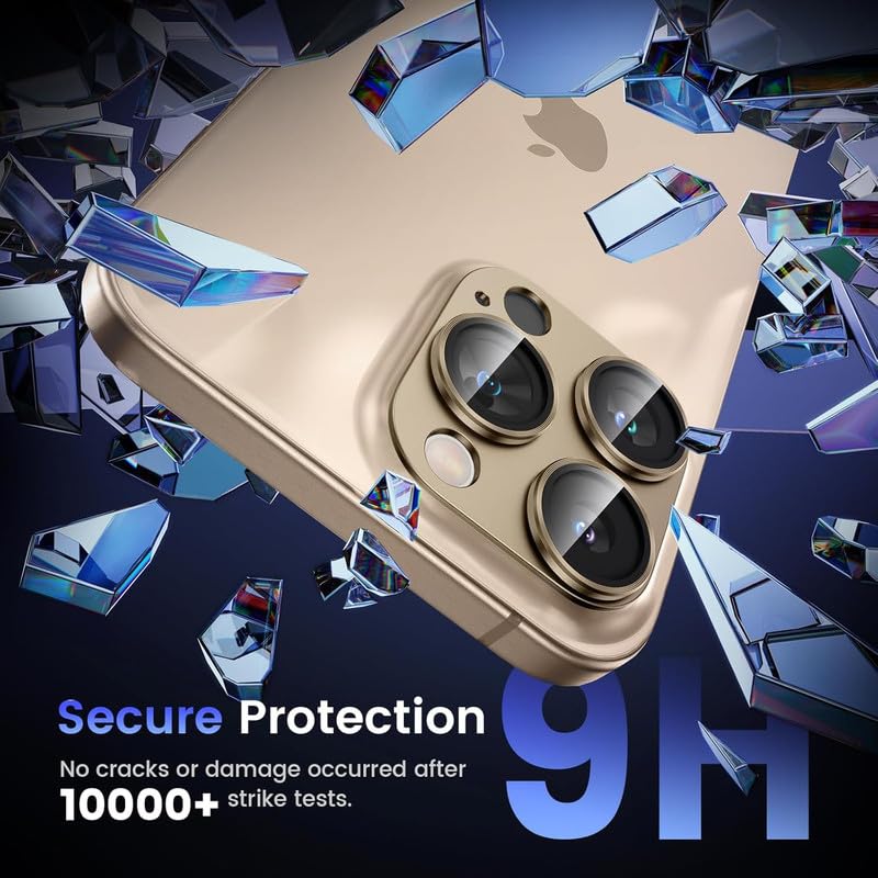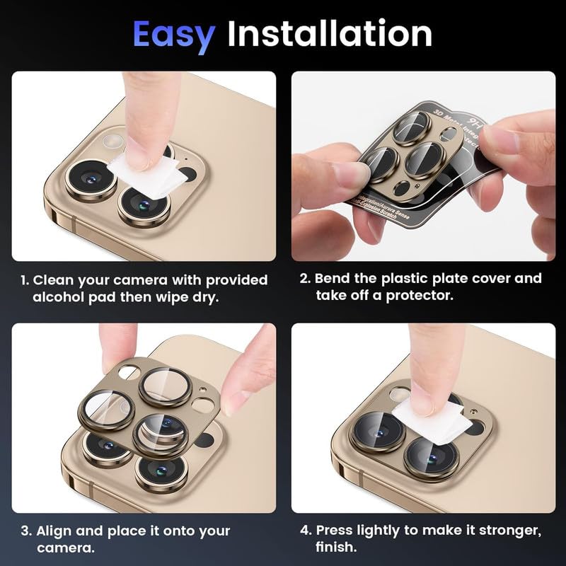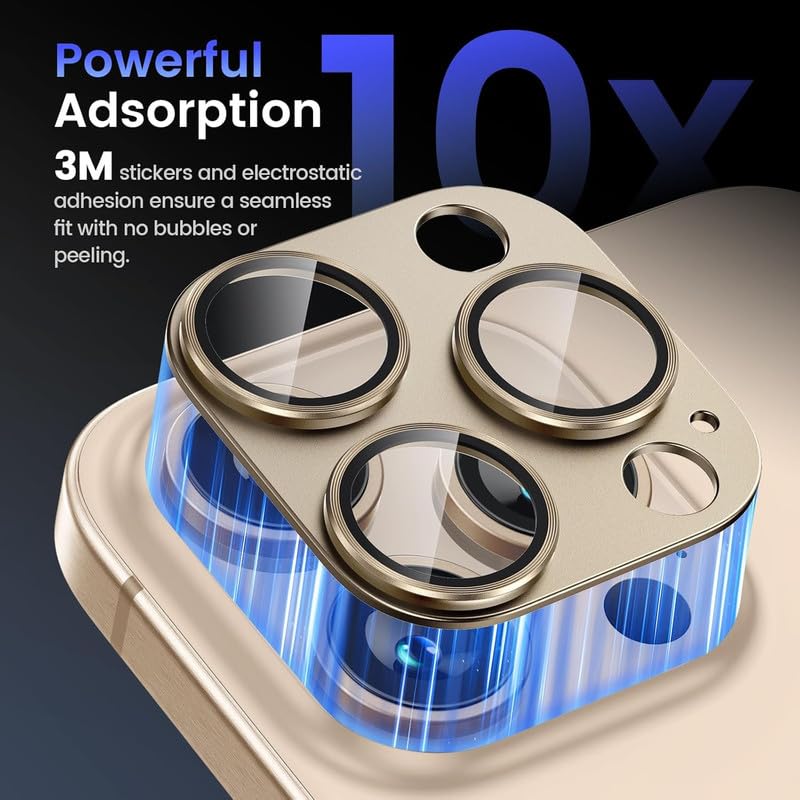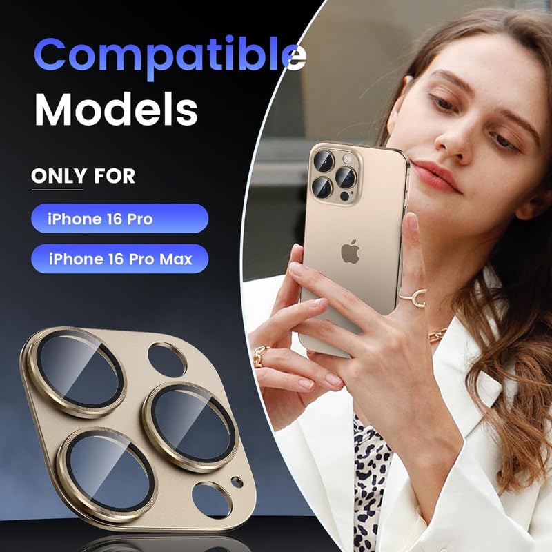 COMPATIBILITY- Our rear camera protector made by 9H tempered glass and aluminum alloy is designed for iPhone 16 Pro 6.3inch / iPhone 16 Pro Max 6.9inch with THREE camera lens. The protector de camara full covers your phone lens. No bubbles, Case friendly, leave no residue after removed. NOTE: Not fit for iPhone 16/iPhone 16 Plus with two camera lens