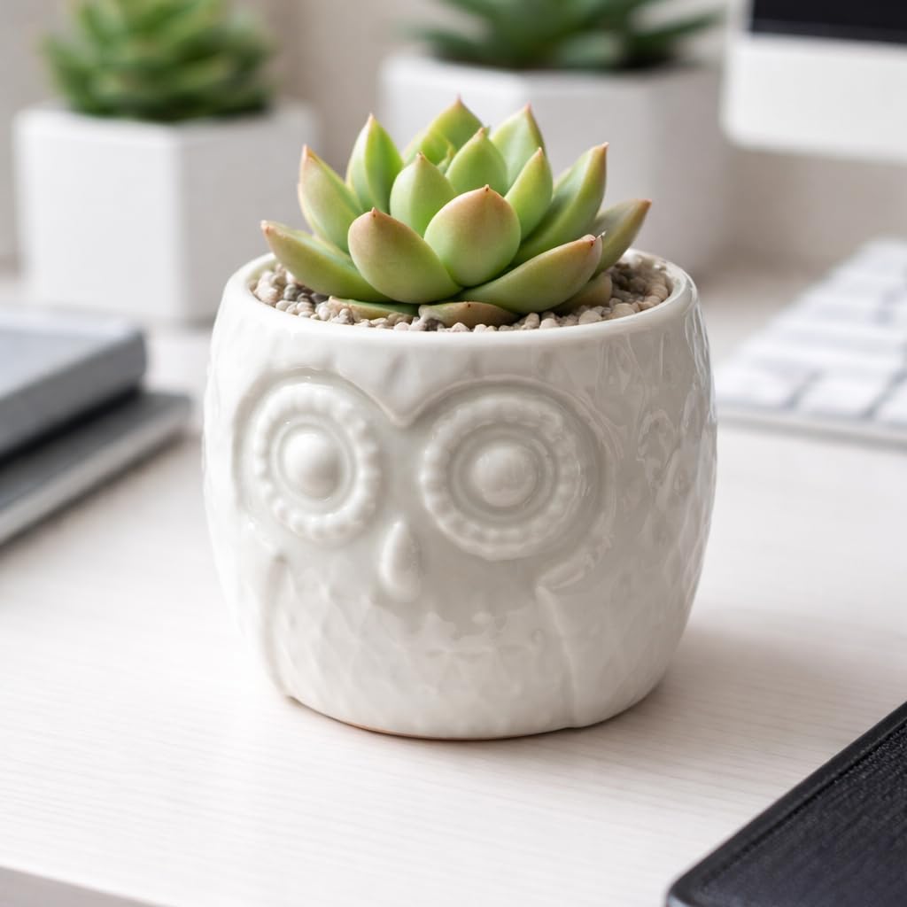 ✔ Cute Owl Design Charming owl-shaped planter adds personality and warmth to desks, shelves, and tabletops.