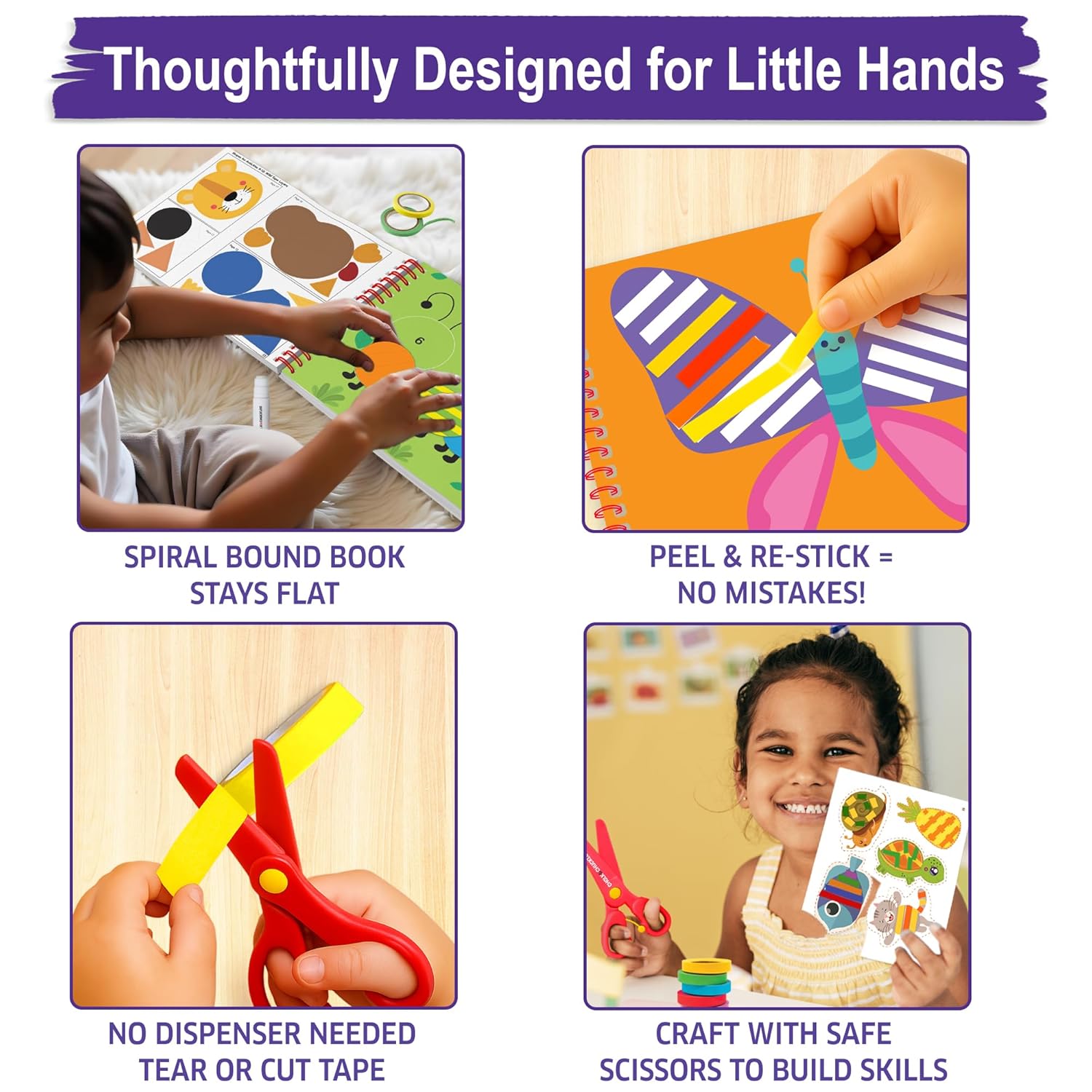 BUILD CONFIDENCE & CUTTING SKILLS WITH EVERY PAGE- Tearing, snipping, and sticking tape becomes a joyful first step into crafting—helping kids feel capable, creative, and proud. Builds fine motor strength and scissor confidence through hands-on play.