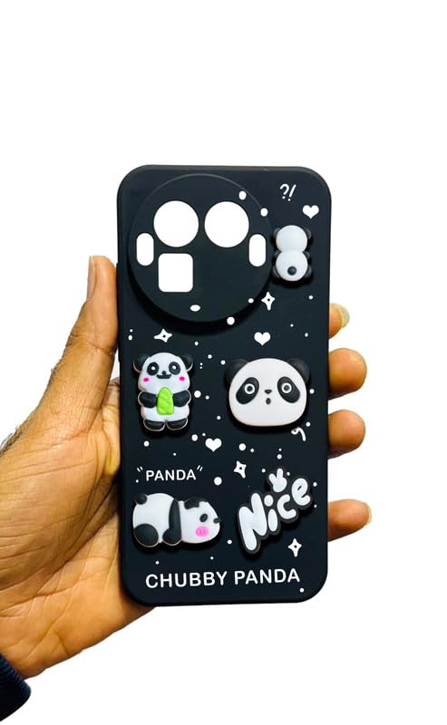 ADORABLE 3D DESIGN: Features cute chubby panda characters in 3D relief with playful expressions, hearts, and stars on a black background with ‘Nice’ and ‘Chubby Panda’ text for a fun, eye-catching look