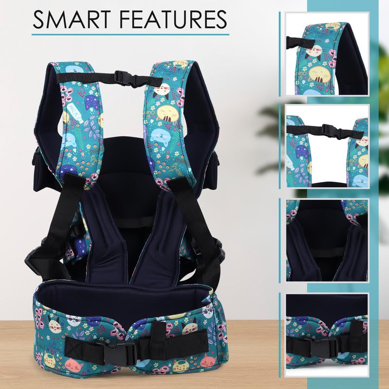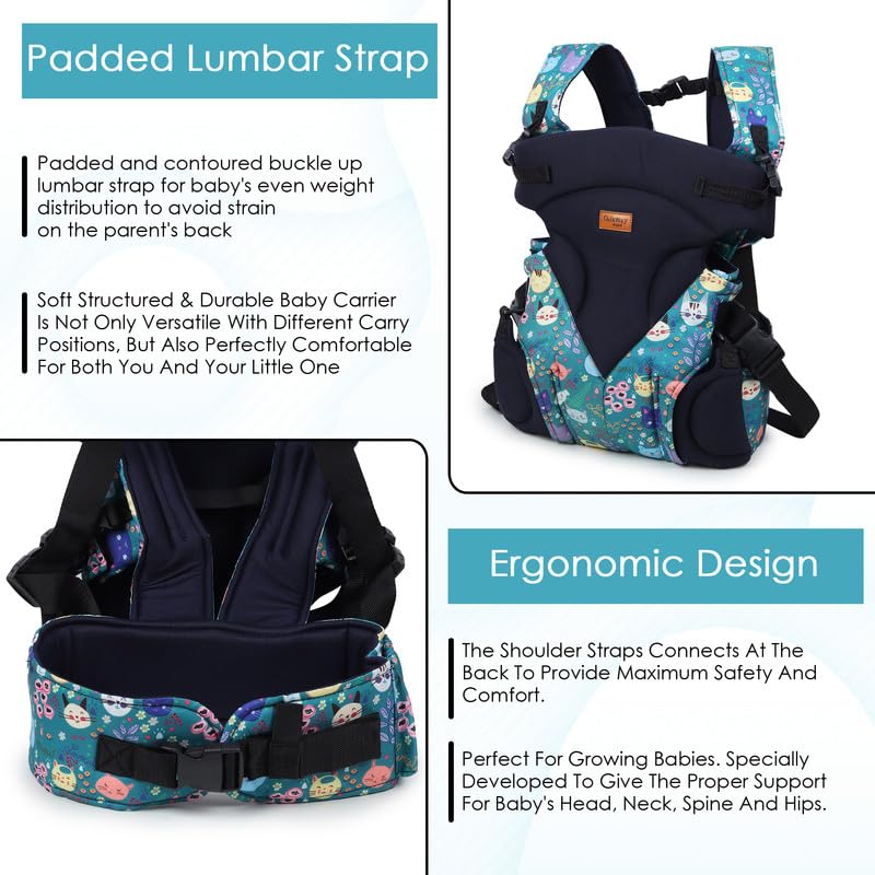 STURDY SHOULDER STRAPS & LUMBER STRAPS: Padded shoulder straps & Cross-belt straps are provided for better back support a wide shoulder strap helps proper support and evens out weight on shoulders. The wide lumbar strap provides apt support to your waist and helps to carry your baby easily, 2-way adjustable shoulder straps and chest strap allowing a perfect fit