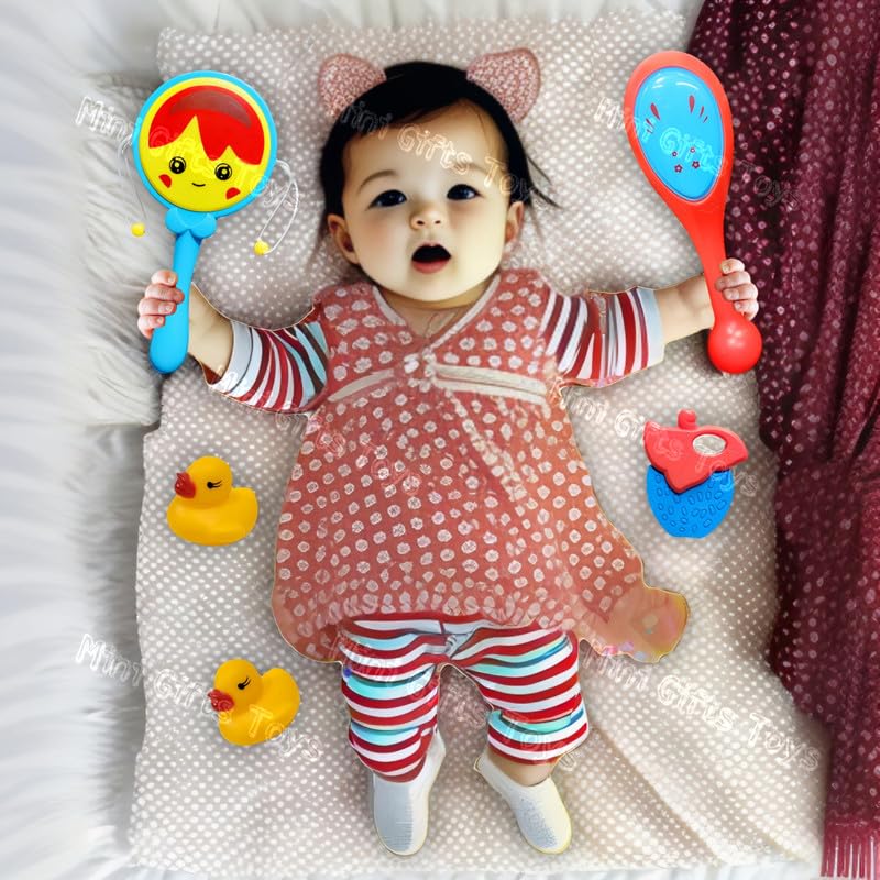 The rattles and rubber toys are just the right size for little hands, eliminating the risk of accidental swallowing. Rattles and rubber toys of different colors are suitable gifts for newborn babies.