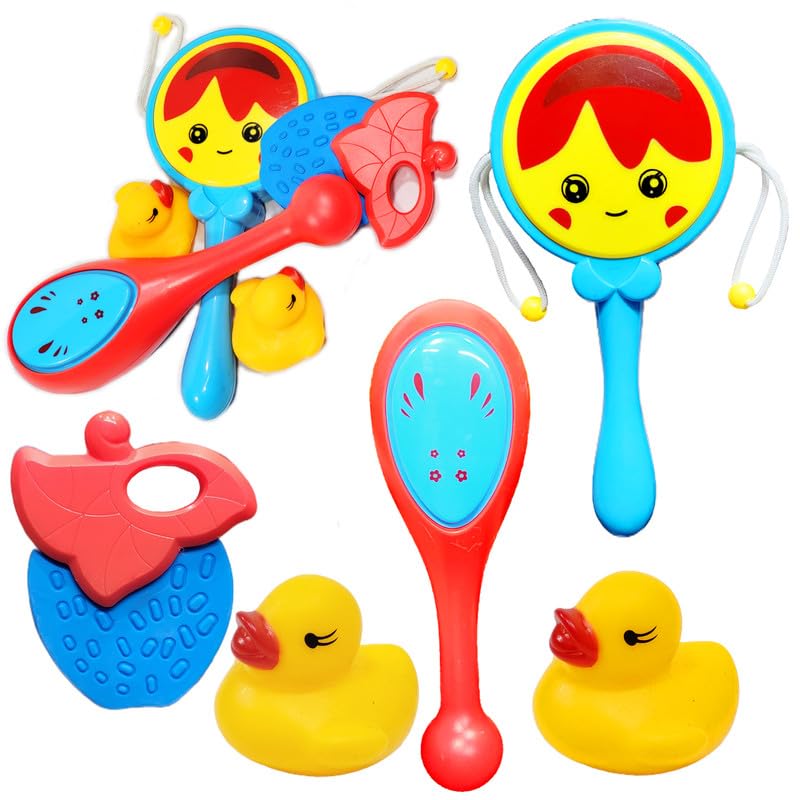 Toys floating on the surface of water include duck. Baby Rattle Is Made Of BPA-free Abs Plastic, Ensuring It Is Safe For Babies To Put In Their Mouths Or Chew On. They stimulate the imagination and encourage tactile exploration. Designed to help strengthen baby’s sensory, hand-eye coordination skills with a variety of colors, sizes and a unique design. Shaking the rattle and pressing the rubber toy produces a melodious and attractive sound which works as a beneficial tool for babies. The rattles and rubber toys are just the right size for little hands, eliminating the risk of accidental swallowing. Rattles and rubber toys of different colors are suitable gifts for newborn babies. Since it is lightweight, it is easy for parents to carry their kids during travels.