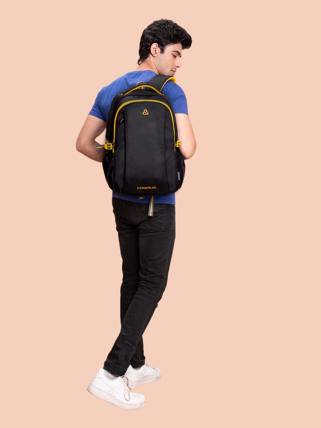 Stylish and Durable Professional Laptop Backpack Cosmus Checkers 15.6 inch laptop backpack is made of High grade water resistant PU cooated polyester material that gives it strength and makes it durable for long-term use. It features a zippered well padded Laptop compartment that fits upto 15.6 inch laptop, middle compartment is big enough to hold your office or daily use belongings, it also has one front zippered pockets with an office organizer, you can use it to store the charger, mouse, pen drive, notepad, pen and other essentials.Killer Checkers 15.6 inch laptop backpack features two mesh side pockets, where you can keep your water bottle or any other item for an quick access. Cosmus Checkers laptop backpack is perfect laptop bag for you,its custioned laptop pocket keep your latop sucurely tight and poctected while you are on the move. This laptop bag pack suits your style & is very comfortable to carry, its ergonomics and makes you forget the load you are carrying, well padded shoulder straps ease the carrying Material: Polyester Compartments & Pockets: Three large compartments, One front Pocket, Two side mesh pockets Compatible laptop Size: Upto 15.6 inches