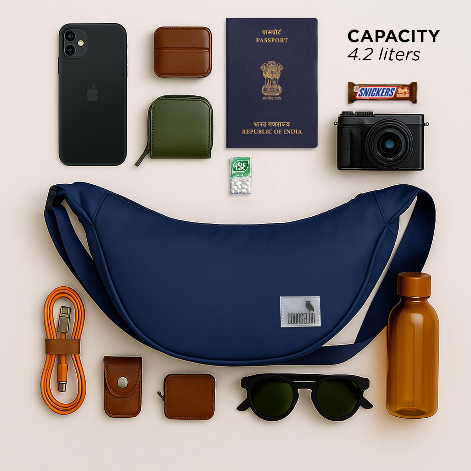 COUNSELOR Sling Bag for Men & Women, Half Moon Sling Bag, Crossbody Bag, Side Bag for Travel, Office, College, Daily Use, Adjustable Strap, Shoulder Bag for Phone, Wallet, Keys ZUKI