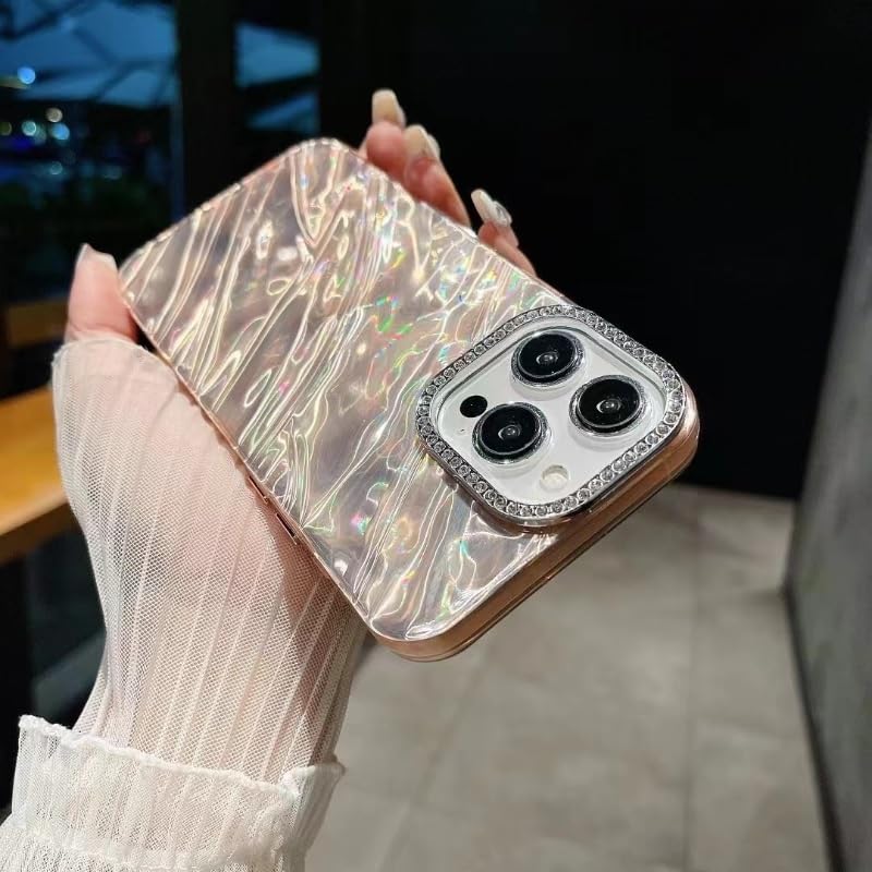 Package Included: – 1 X Luxury 3D Hot Diamond Ring Full 360 Camera Protection Phone Case,Luxury 3D Laser Cut Water Ripple Mirror Plating Bling Gradient Glitter Colorful Hard Shockproof Bumper Cover