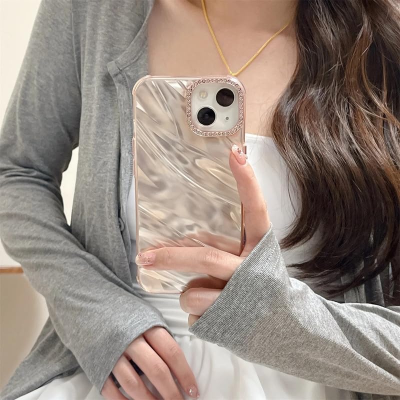 🎀【Love 3D Aesthetic Water Ripple Mirror】 in order to bring you the best experience, we have designed a Mirror Plating Bling Gradient Phone Case with Cute Neon Transparent See through Design Back Case with Holder Cute Hard Silicone Stylish Fashion Fun Aesthetic Cover
