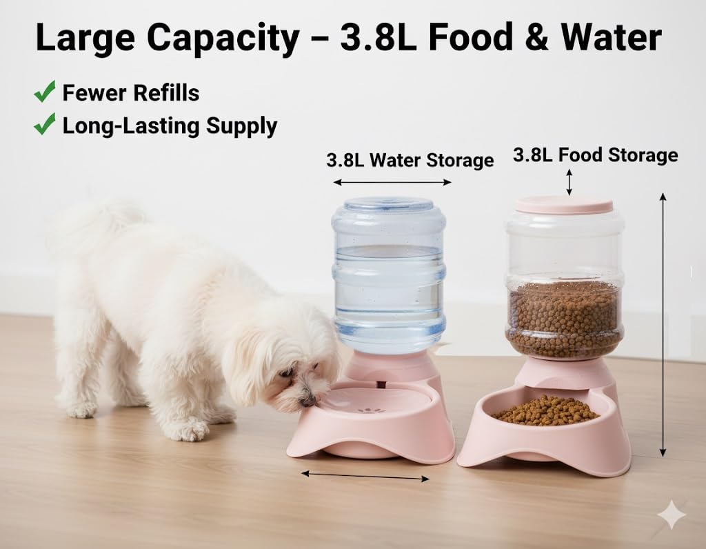 Perfect for Busy Owners: Whether you’re at work, traveling, or running errands, this feeder provides peace of mind knowing your pets have a constant food and water supply.