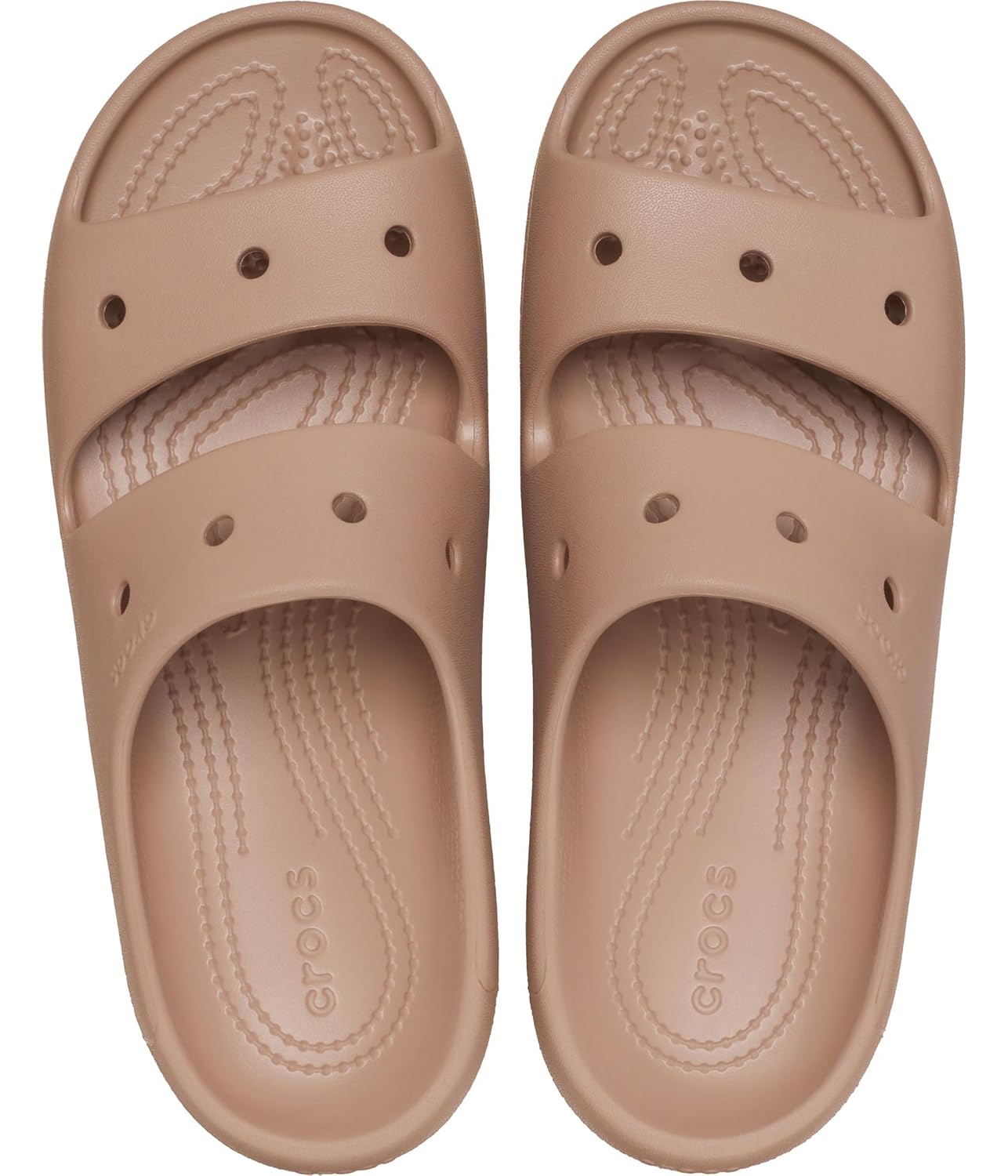 The look and feel of our comfortable Classic Clog and Crocs Slide, now in sandal form. Two upper straps offer even more comfort and foot security, and seven holes on each shoe allow you to personalize with Jibbitz™ charms. We’ll even get you started by including a Crocs logo charm. Original Croslite™ foam cushion will keep you supported from the beach to backyard gatherings and beyond.