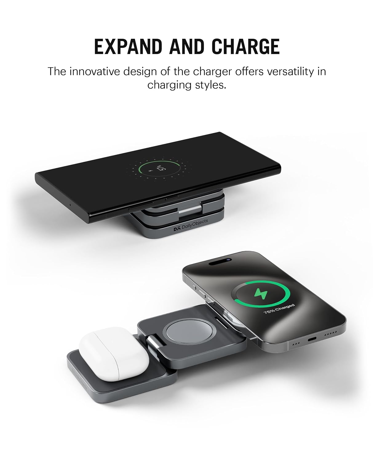 DailyObjects SURGE™ Max Foldaway 3-in-1 Magnetic Compatible with MagSafe Wireless Charger | Compatible with iPhone 15 14 13 12 | Airpods 2/3/Pro Smartwatches | Fast Charging | Superior Metallic Design