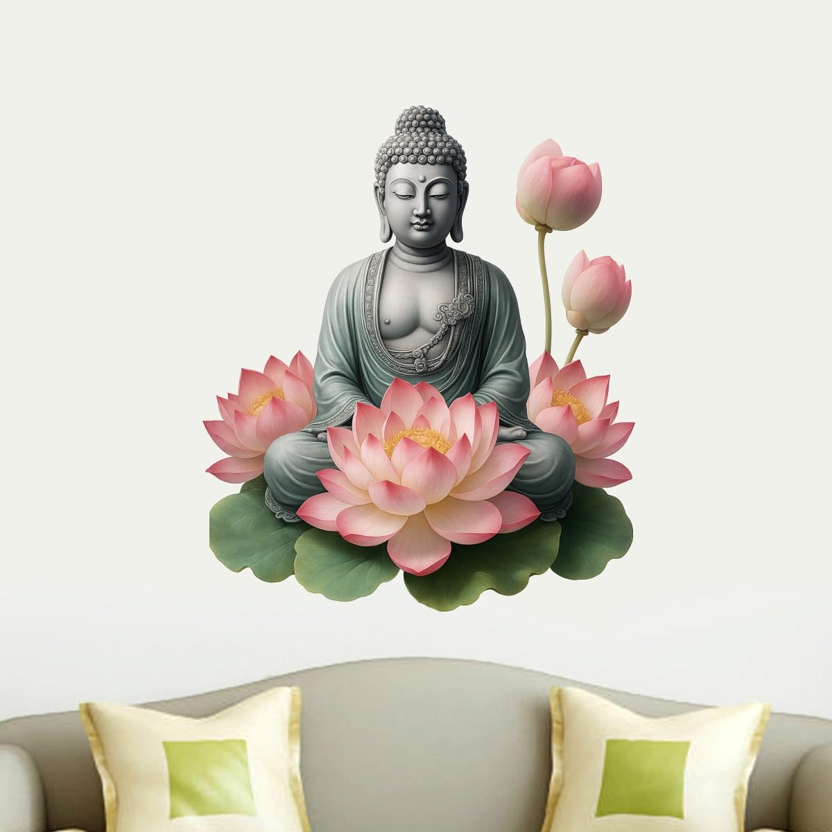 Decal O Decal Meditating Buddha with Lotus Flowers Self Adhesive Wall Sticker