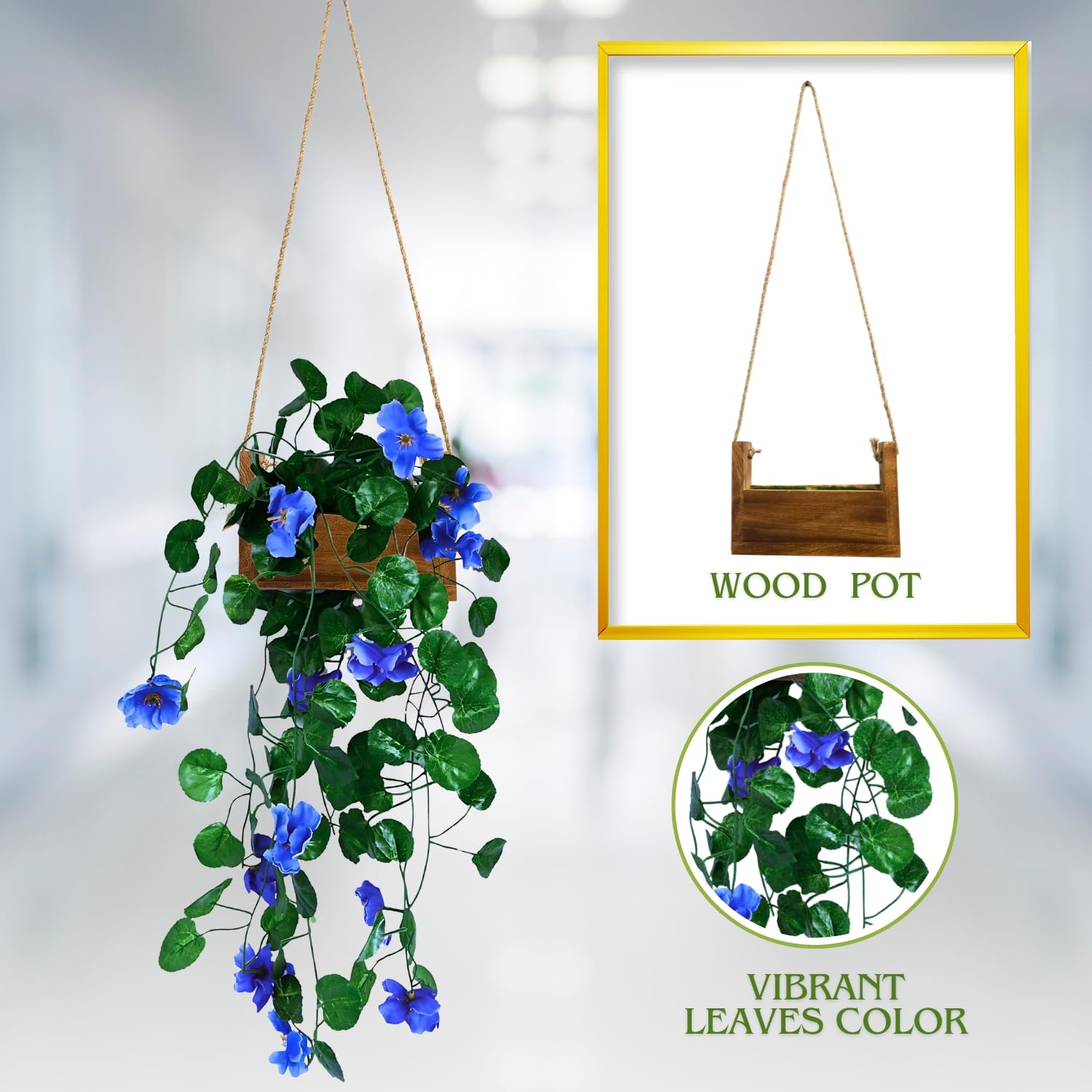 Artificial flower hanging with pot is made with the best quality plastic and natural wood for the pot. The hanging is realistic looking which gives a fresh feeling.
