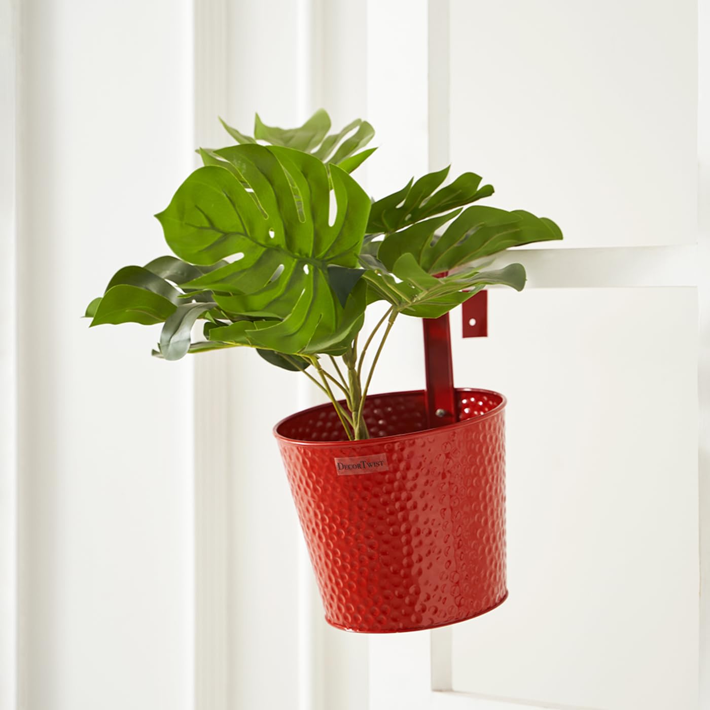 DecorTwist Railing Planter for Balcony with Detachable Handle (Red, Pack of 1, 10 inch) | Metal Hanging Planter | Plant Container Gamla for Home Décor | Indoor & Outdoor