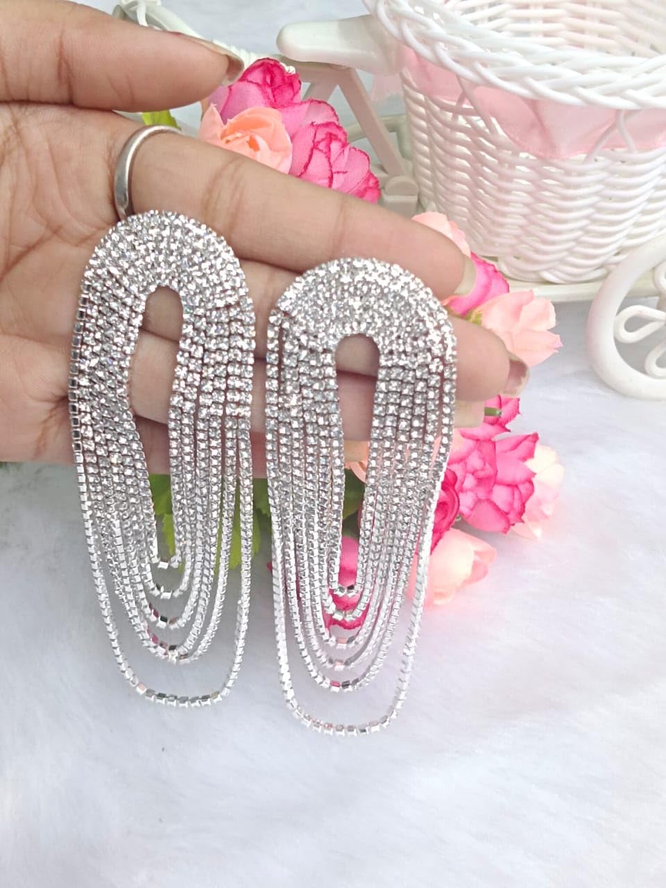 DENICRAAS Beautiful Jarkan Rhinestone Long Tassel Fancy Trendy Earring Jhumki, designed to bring a touch of glamour to your special occasions. Featuring shimmering Jarkan rhinestones and elegant long tassels, these earrings are the epitome of modern sophistication with a traditional twist. Perfect for weddings, parties, anniversaries, or birthdays, these lightweight and versatile jhumkis make for an excellent gift for girls and women. The intricate craftsmanship and dazzling design ensure you’ll stand out in any crowd.
