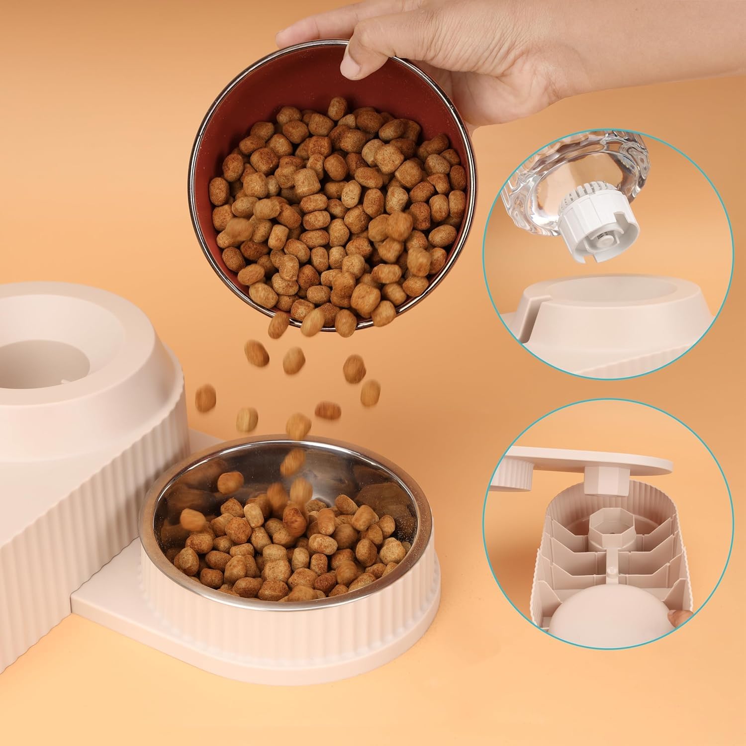 Keep your furry companions fed and hydrated effortlessly with this 2 in 1 Automatic Pet Feeder and Water Dispenser. Designed with convenience in mind, this all-in-one pet station features a gravity-fed water system that automatically refills the bowl without the need for power or pumps, while the detachable stainless steel food bowl ensures hygiene and easy cleaning. Perfect for cats, dogs, and rabbits, this feeder is made with durable, BPA-free materials and is suitable for both home and travel use. The large capacity water bottle and anti-slip base make it a reliable solution for pet owners who want peace of mind throughout the day.