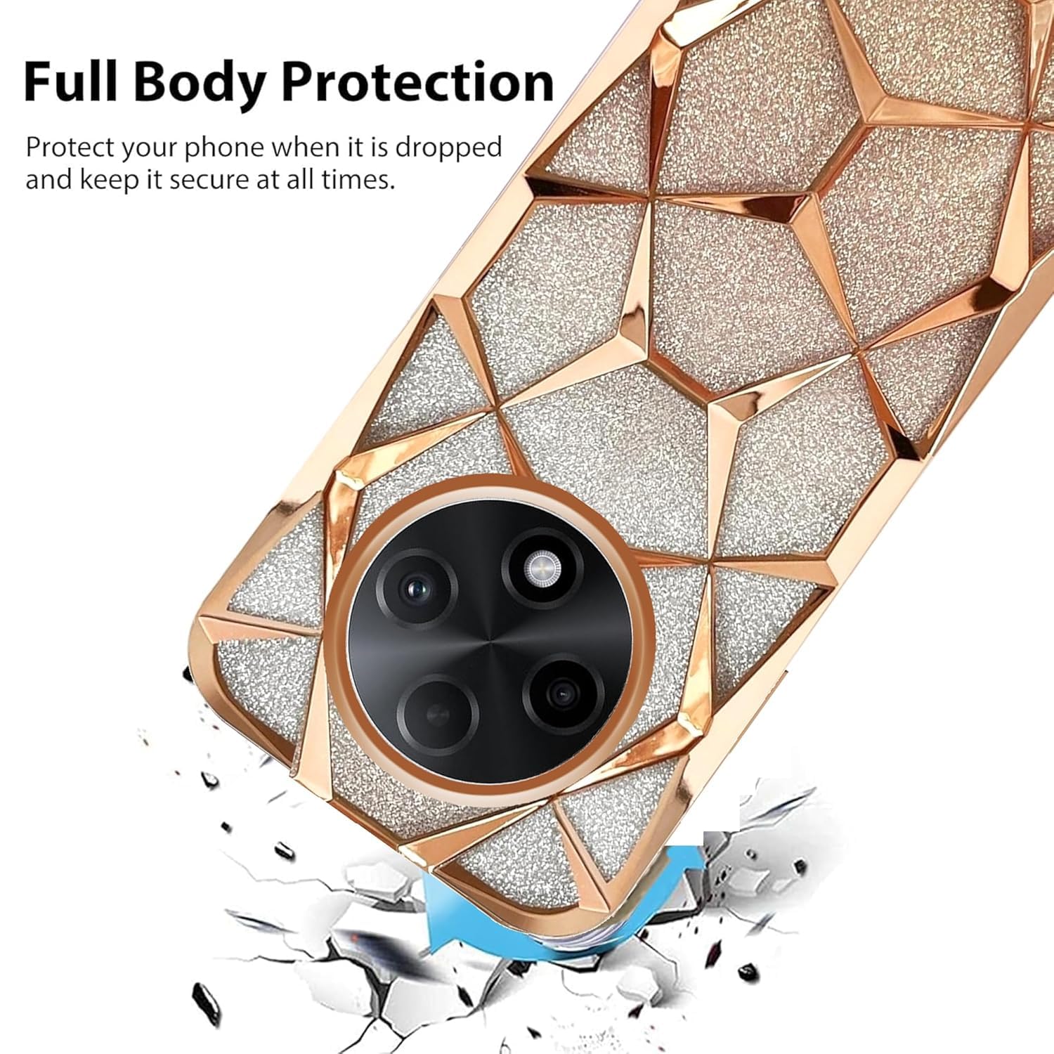 💎 Stylish Glitter Design – Eye-catching gradient with 3D geometric diamond texture adds a luxurious and trendy look to your for Oppo F27 Pro+ Plus 5G.
