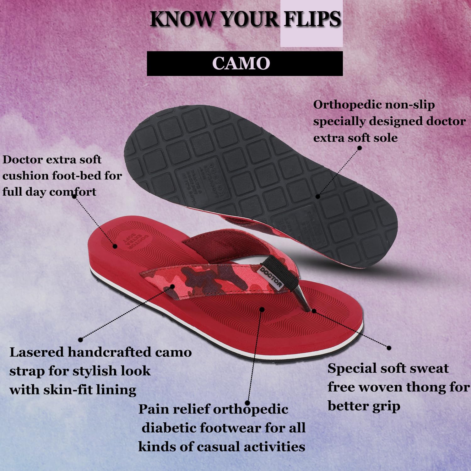 DOCTOR EXTRA SOFT House Slipper for Women’s Camo | Pregnancy | Orthopaedic & Diabetic | Bounce Back Technology |Add This wonderful slippers to your Shoe Closet. Brought to you by Family Footwear, this slipper is not only Colourful and Highly attractive to look at, but also extremely Comfortable to wear.These slippers are preventive footwear for Diabetic Foot problems, relieves heel arch and Ankle Pains.Soft in-sole, Flexible sole for better walking comfort Extra Soft and Comfortable bottom for Heel Comfort. Ultra softy |Memory Foam Cushion |Comfortable Footbed for Girls & Ladies Daily Use D-56