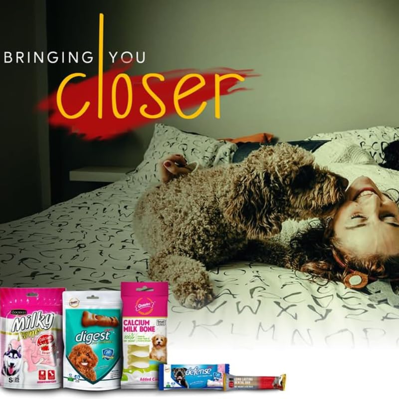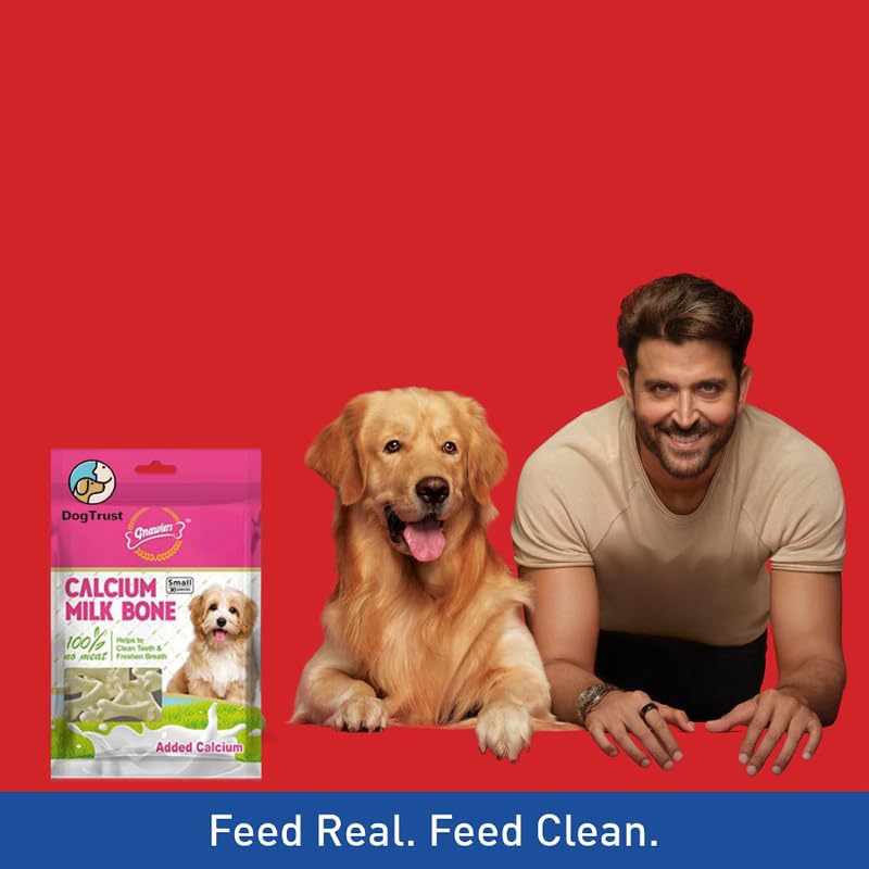 1)It helps in maintaining strong bones and muscles, improves digestive problems and cleans teeth. 2)The protein abundant milk bones, when chewed, assist in rubbing off the tartar and plaque formation from the teeth and gums of the puppy, facilitating the incoming of fresh breath. 3) Calcium contributes towards the health of bones and teeth of the dog. It is suitable for dogs of all breeds 2 months onwards.