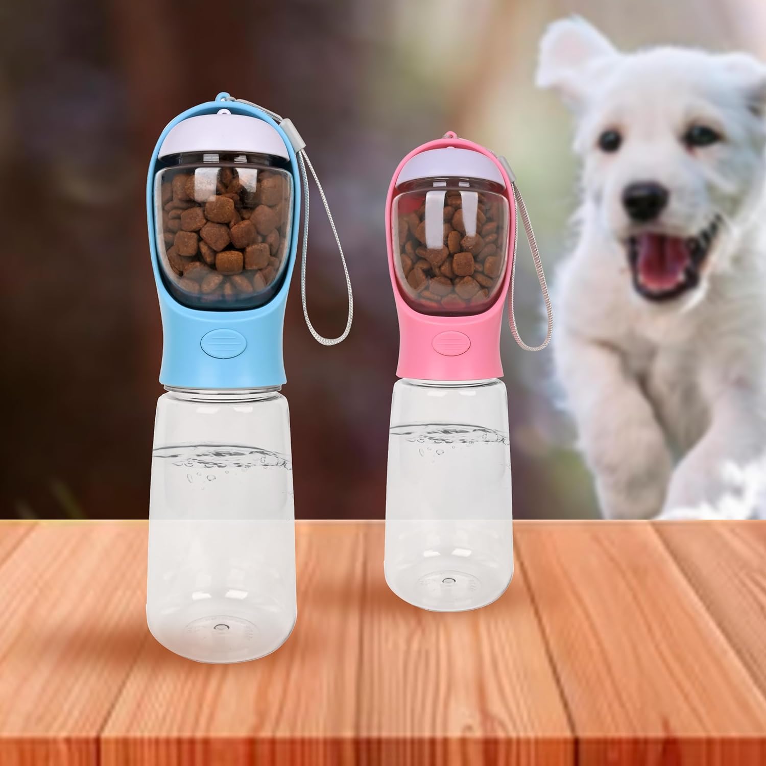 Dog Water Bottle, 2 in 1, Leak Proof Portable Pet Water Bottle with Food Container, Outdoor Portable Water Dispenser for Dog, Puppy Supply for Walking, Hiking, Camping,Travel (Pink, Blue)