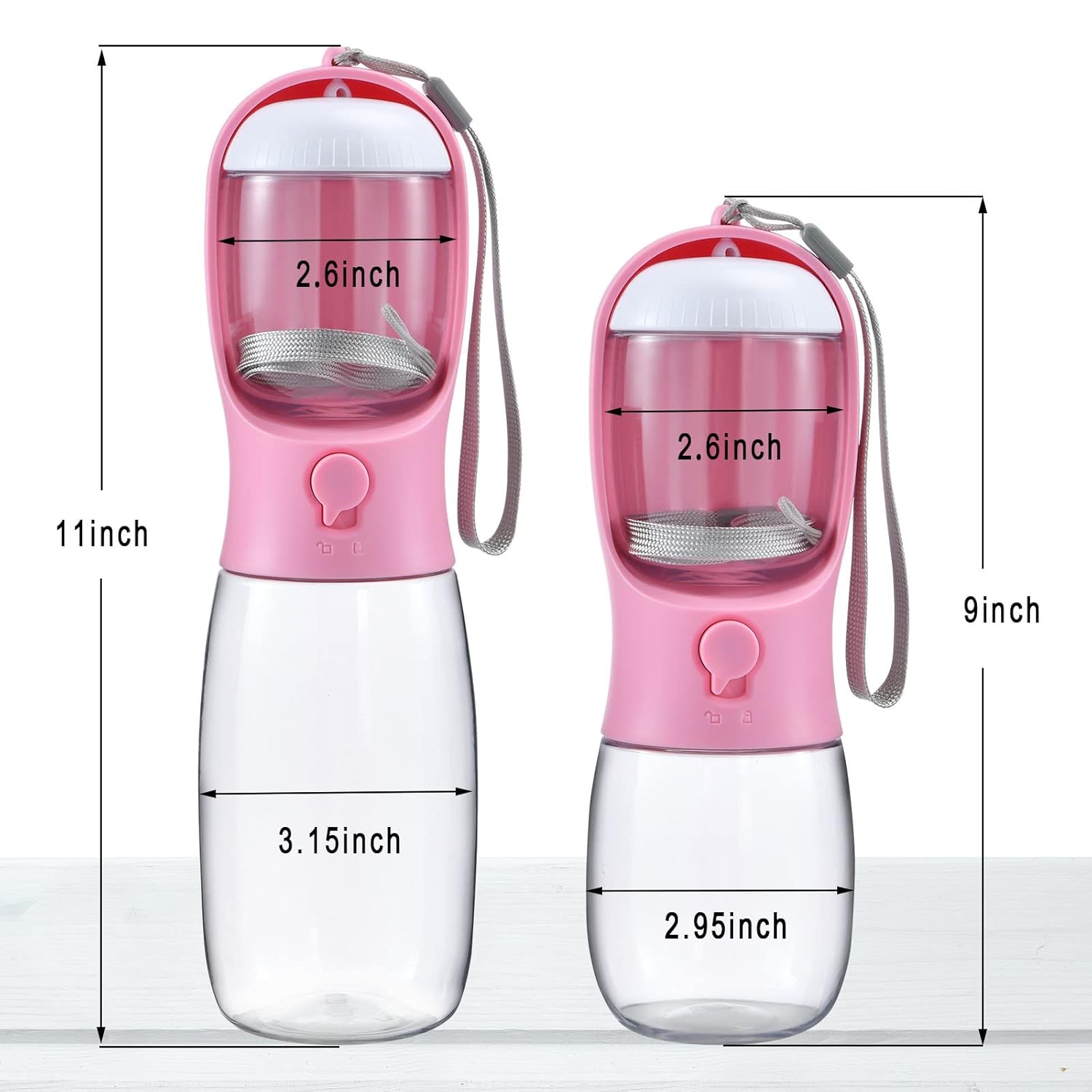 Optional Colors & Water Capacity: There are multiple fashion colors and different capacity of water-10oz(300ml) and 19oz(550ml). 10oz water is enough for puppies and small pets walking, 19oz is needed for large dogs travelling and hiking.