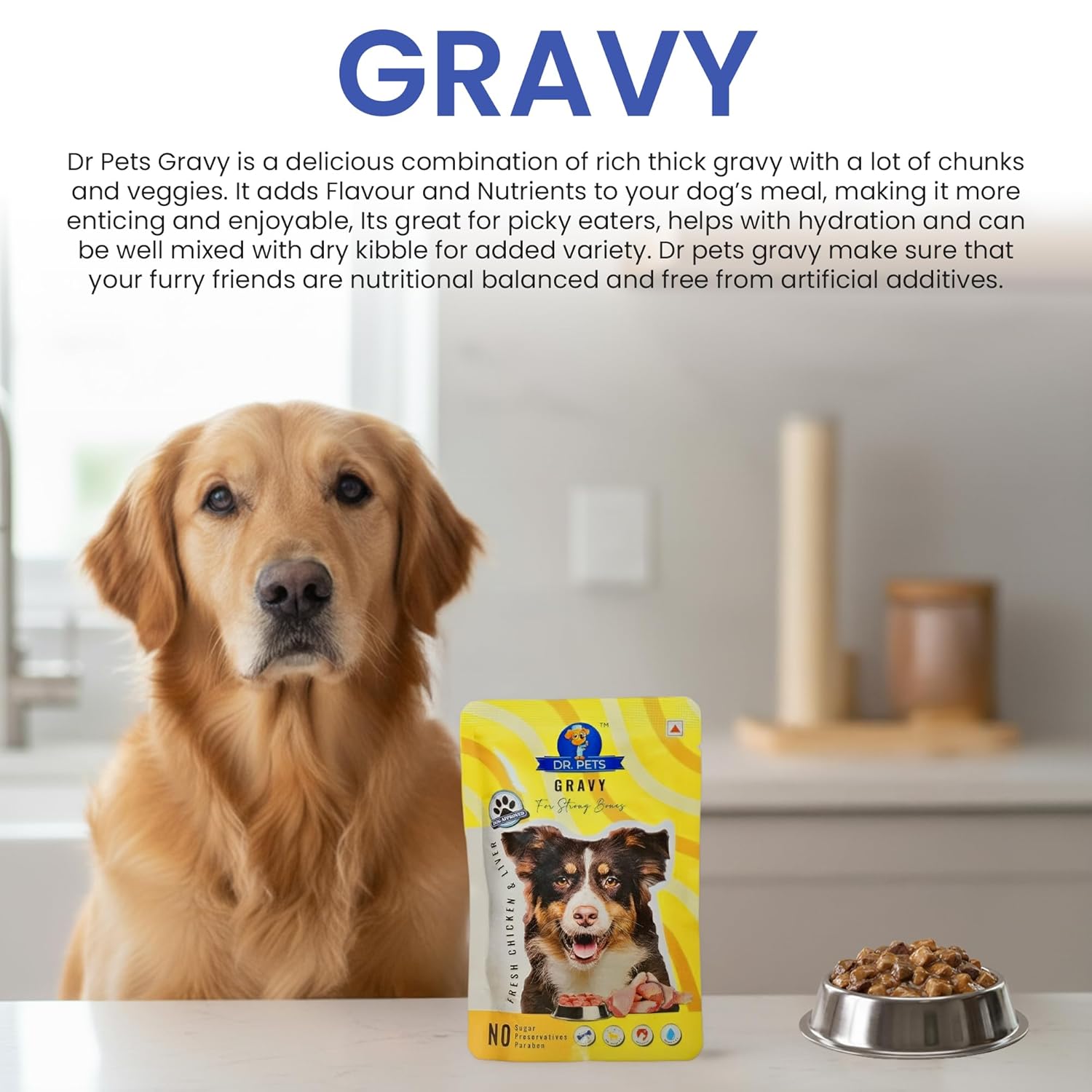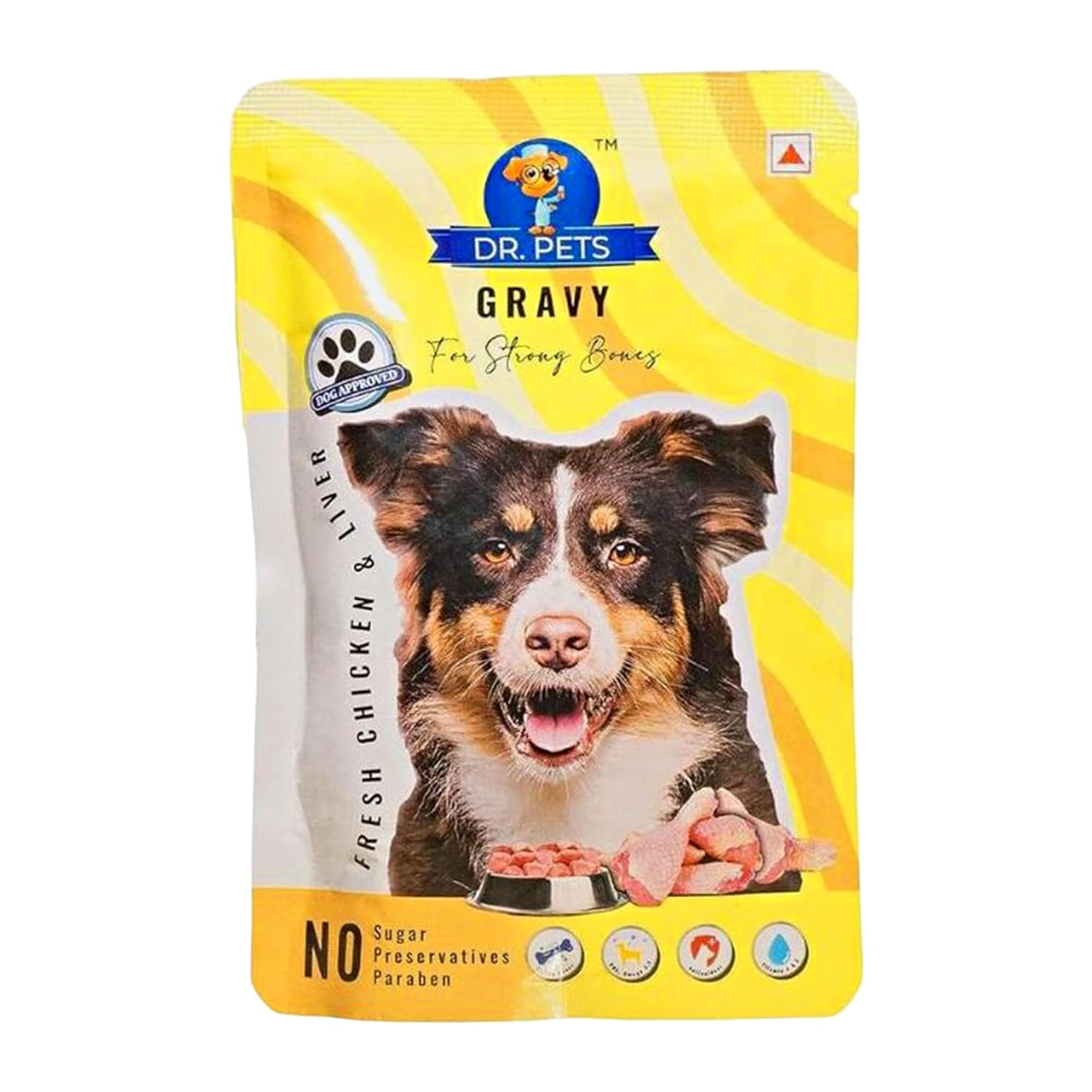 Dr.Pets Gluten & Preservative Free Dog Wet Food (Gravy) | Balanced Meal with High Protein Chicken & Liver Chunks for Adult Dogs & Puppies | No Added Sugar & Paraben | 85 g (Pack of 12)