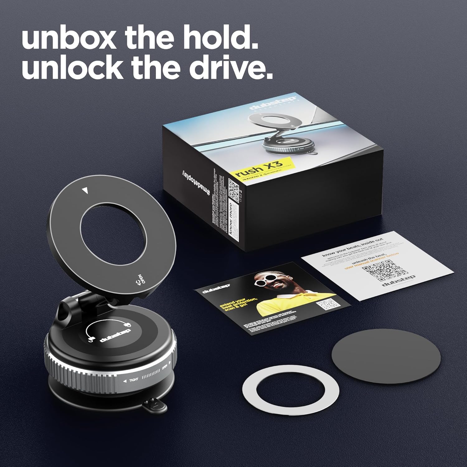 Introducing the Rush X3 magnetic mobile holder – your ultimate smartphone mounting solution for cars and dashboards. This versatile holder features powerful magnetic technology combined with a metal ring attachment system. The premium construction utilises durable zinc alloy and ABS materials, ensuring long-lasting performance. With its innovative 360-degree rotation capability, you can easily adjust your device to any viewing angle. The secure mounting system includes a robust suction cup base with a convenient locking/loosening knob for quick installation and reliable attachment to surfaces. The holder comes equipped with an anti-lock breaking system for added security and peace of mind. Perfect for navigation, hands-free calls, or entertainment, this mount brings convenience to your daily commute. Key Features • Strong Magnetic Phone Mount • 360° Rotatable Design • Zinc Alloy + ABS Construction • Anti-Lock Breaking System • Quick-Mount Suction Cup Base • Locking / Loosening Knob Mechanism • Universal Phone Compatibility • Dashboard Mount Ready”