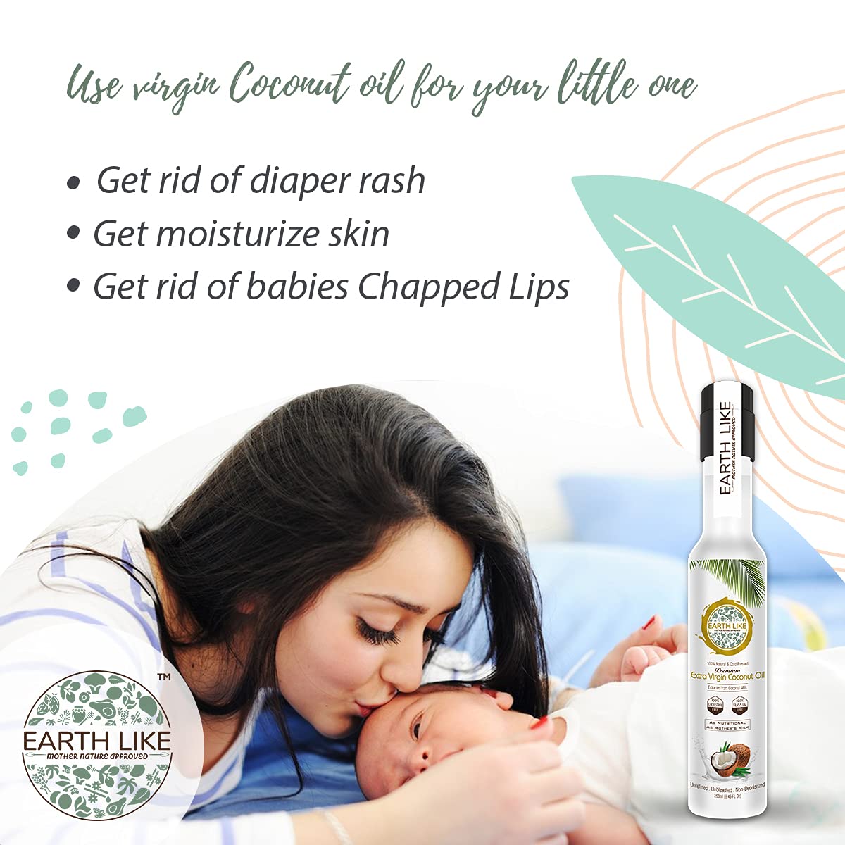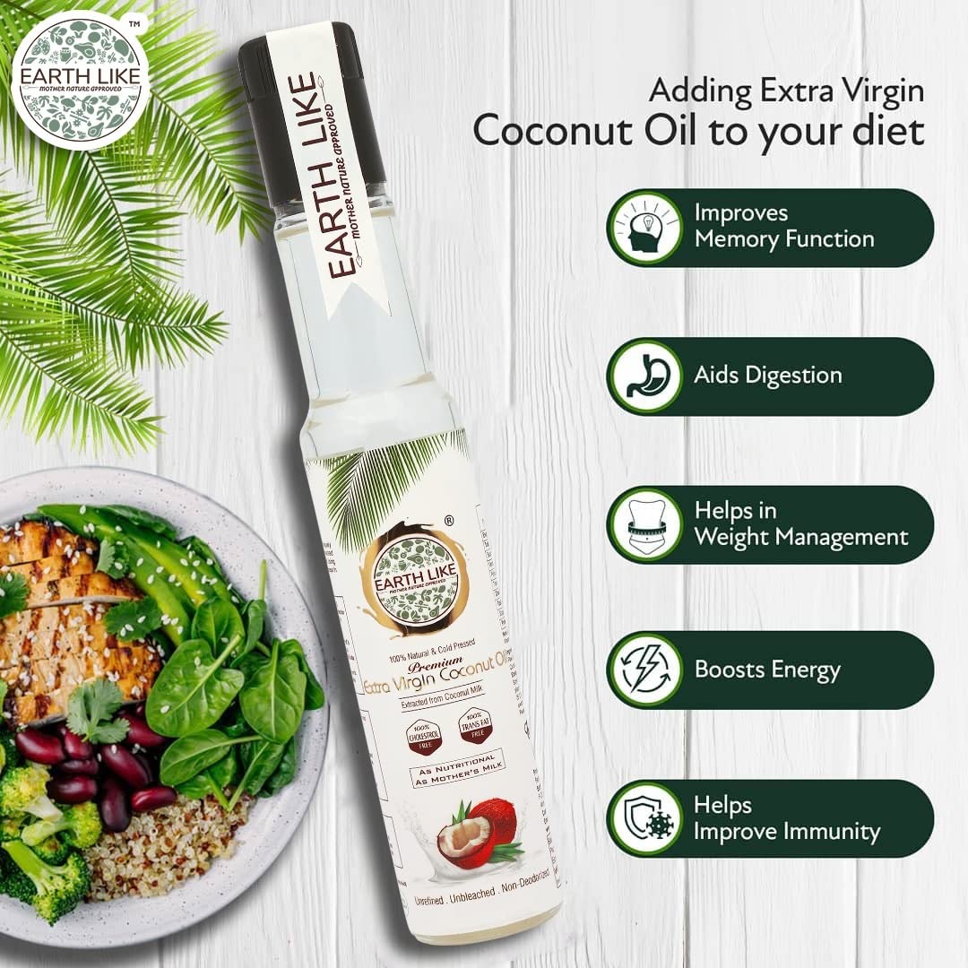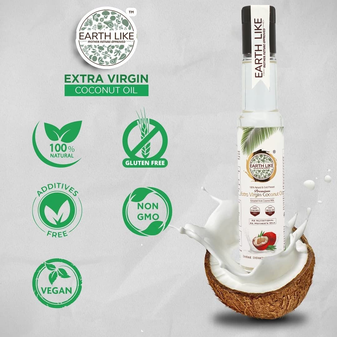 EARTH LIKE Extra Virgin Coconut Oil (500ml) 100% Natural Cold Pressed from Fresh Coconut Milk, Nourishing & Enriching for Skin Care, Hair Growth, Baby Massage & Healthy Edible Cooking Oil