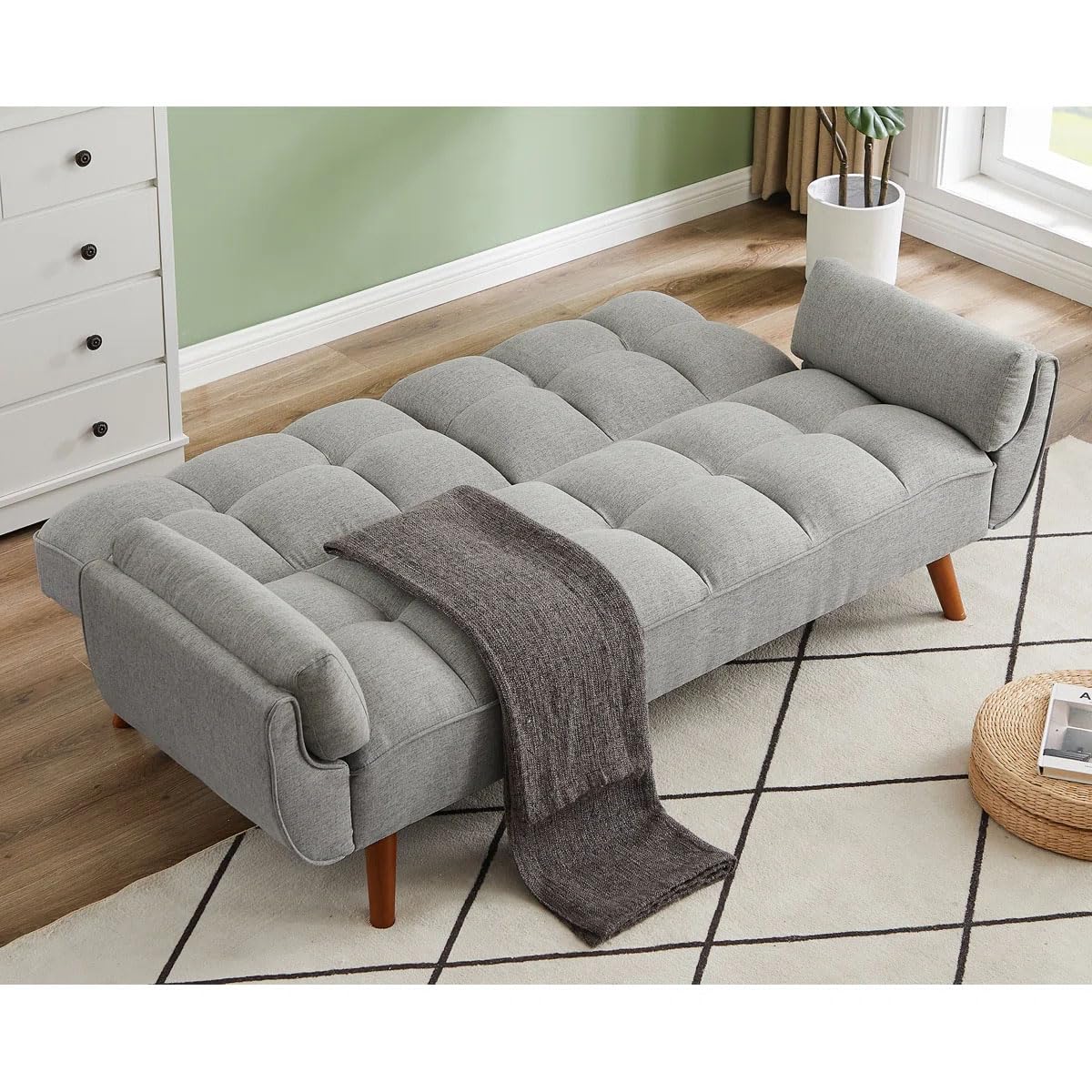Eiram Aleana 3-Seater Sofa Cum Bed | Convertible Sleeper Sofa with Tufted Velvet Upholstery | Modern Space-Saving Sofa Bed for Living Room & Bedroom|2 in 1 Convertible Sofa for Home (Grey)
