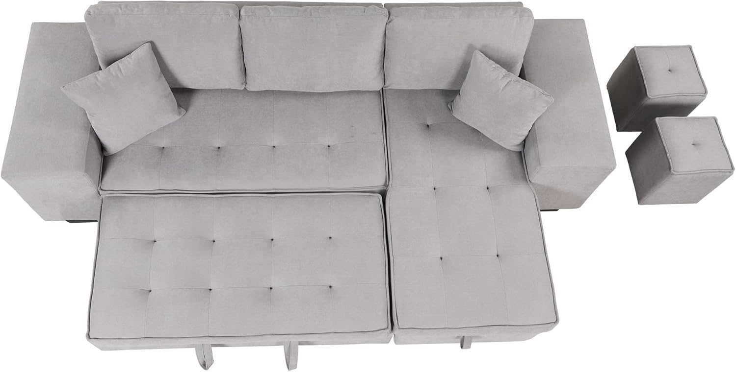 Built-in Storage & Hidden Stools – Features a spacious under-seat storage ottoman to keep blankets, pillows, or games tucked away. Comes with 2 hidden cube stools for extra seating or footrests.