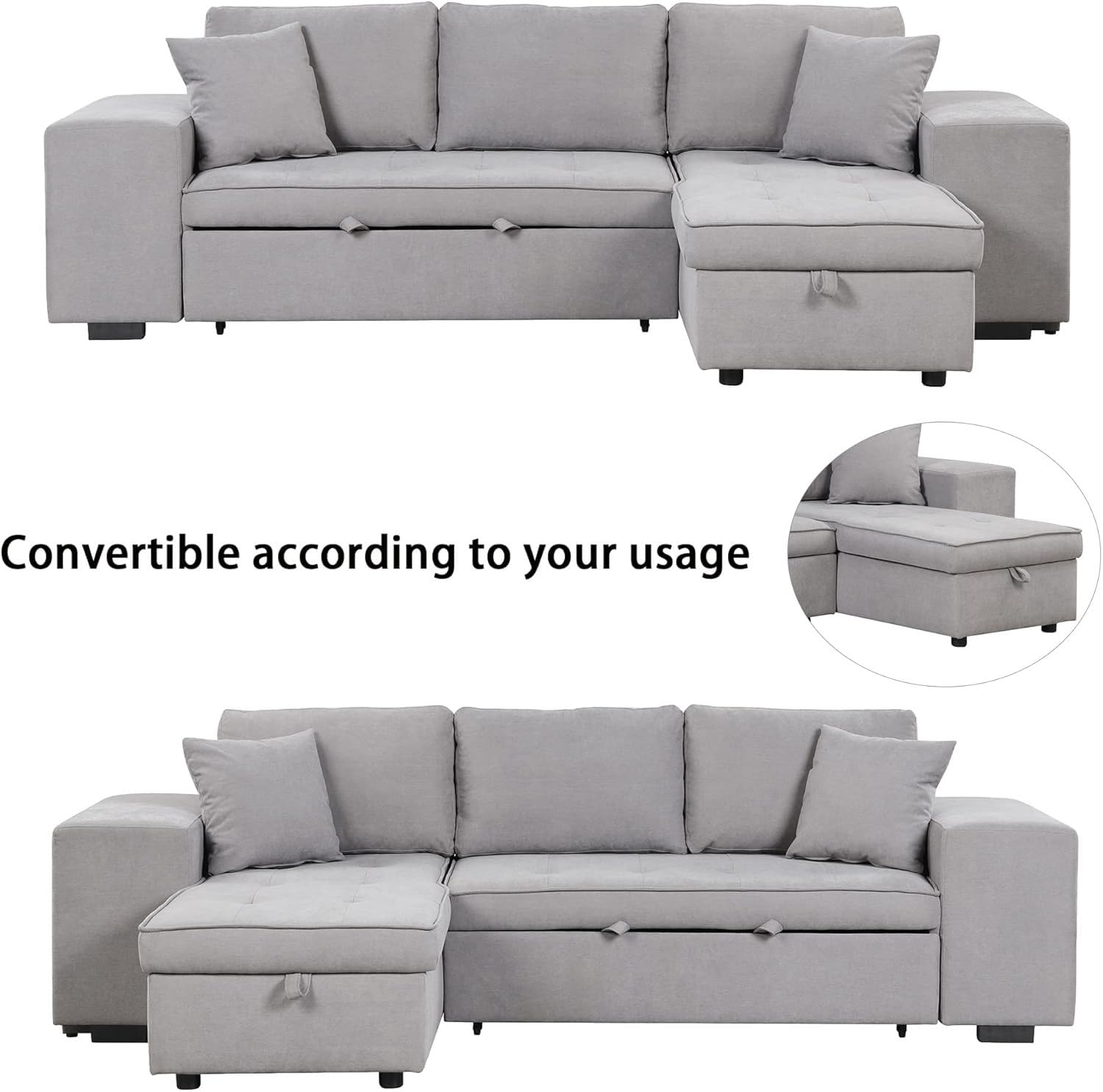 Versatile 3-in-1 Design – This L-shaped sectional functions as a comfortable sofa, chaise lounge, and pull-out bed, perfect for compact apartments, living rooms, guest spaces, or studios.