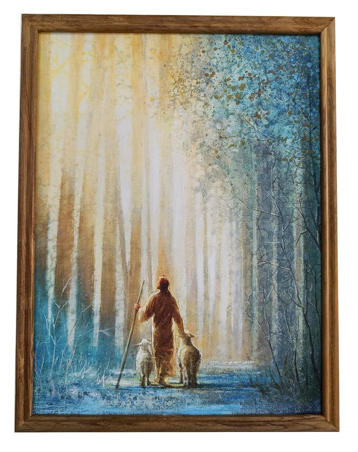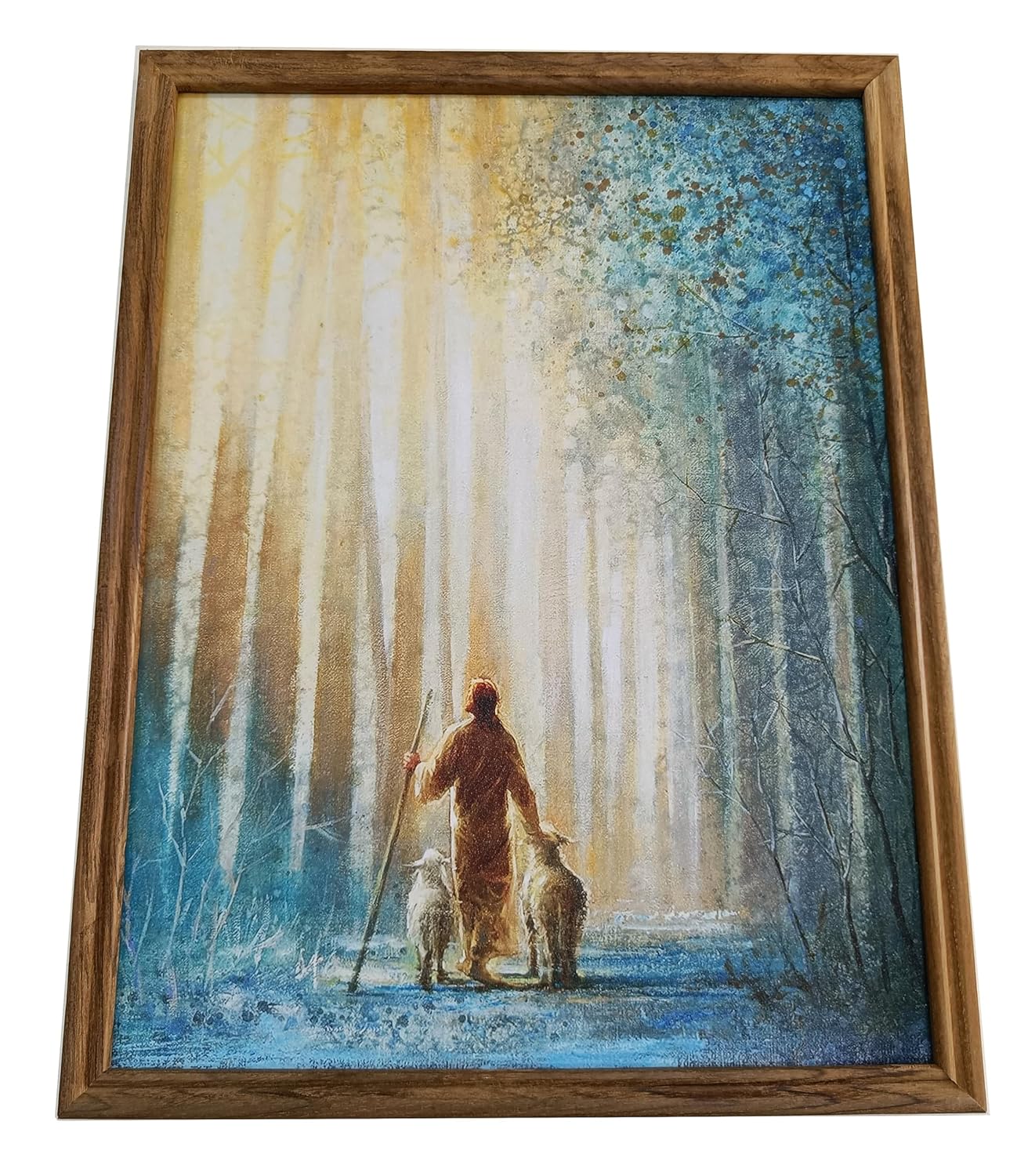 The Jesus Christ Good Shepherd painting frame portrays a powerful symbol of faith and compassion, depicting Jesus as the shepherd who guides and protects his flock. This imagery carries deep spiritual significance, representing the unwavering love and care of Christ for his followers.