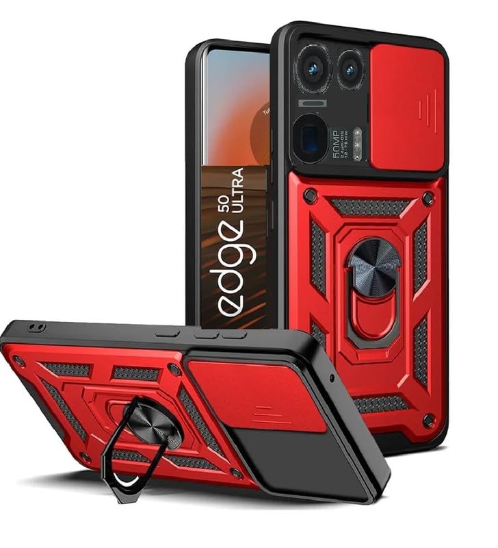 ELICA Shutter Ring Case for Motorola Edge 50 Ultra 5G, Military Grade Protection Phone Case with Slide Camera Cover/Rotation 360 Ring Case for Motorola Edge 50 Ultra 5G – Red