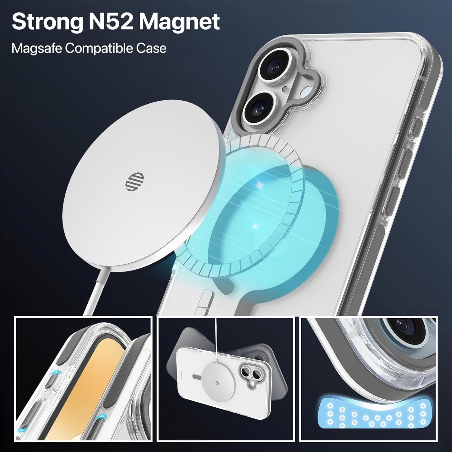 eller santé Back Cover For iPhone 16 Plus Scratch Resistant Shockproof Protective TPU Phone Case 10ft Feet Drop Protection Support Mag-Safe Wireless Charging