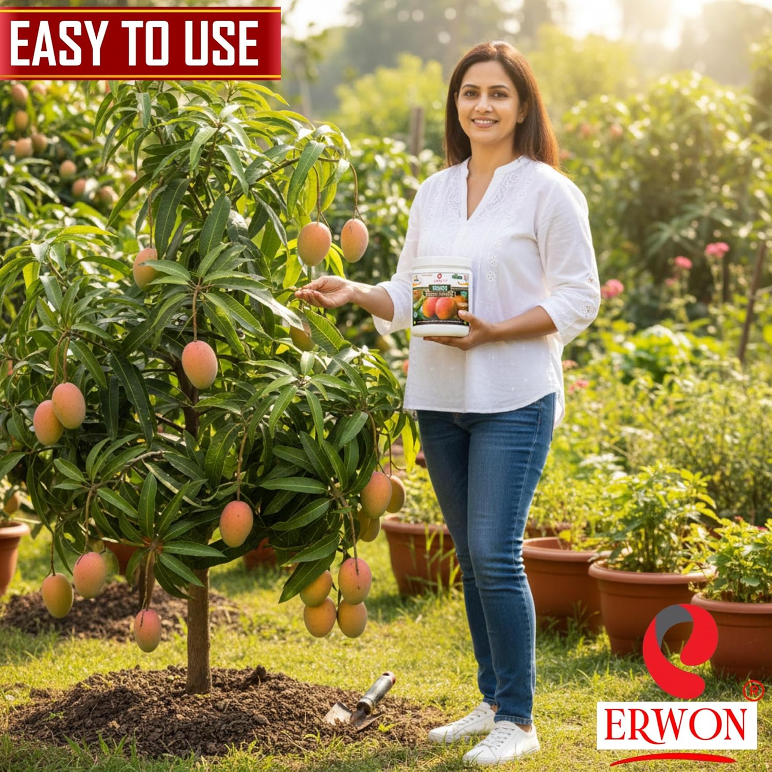 Mango Growth Miracle is an organic, fast-acting fertilizer that promotes rapid growth, heavy flowering, and bigger fruits for Mango plants. This all-in-one granular fertilizer contains essential micro and macronutrients like active iron, potassium, and nitrogen, which balance pH, improve aeration, and prevent premature fruit drop. Suitable for all Mango varieties, it stimulates plant growth, enhances flowering, and ensures a bountiful harvest. Erwon’s premium quality fertilizer is ideal for lush, thriving Mango trees and a plentiful yield of delicious Mango. For best results, follow the usage instructions carefully.