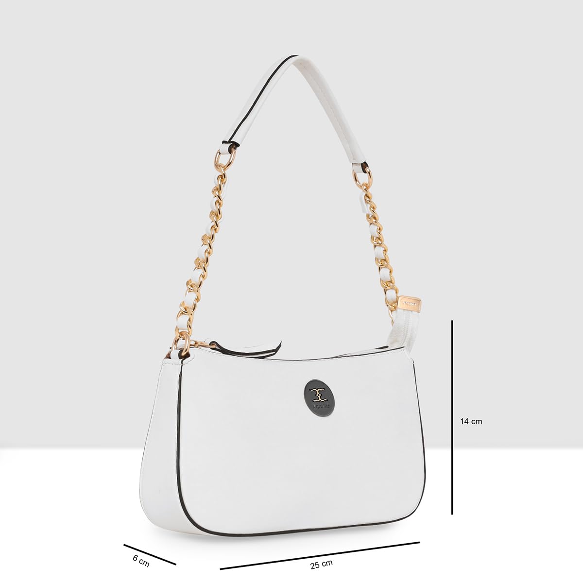 ESBEDA Chain Handle Small Handbag with 1 main compartment with having zip closure. 3 pockets (1 zip pocket, 1 Non zip pocket inside) (1Zip pocket back side) This bag will catch all the attention and will lead to a perfect finishing touch to your look. this is a very fashionable bag which you can carry everyday.