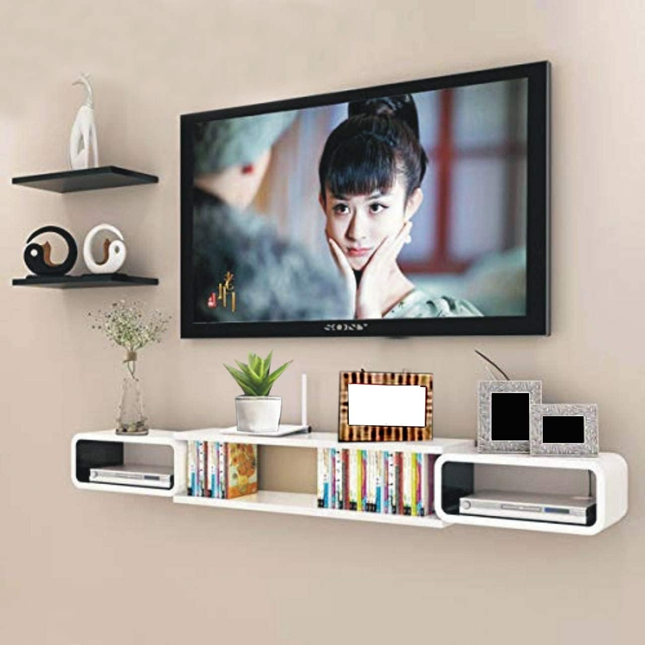 Wooden TV Entertainment Unit with Wall-Mounted Set-Top Box Stand and Wall-Hanging Storage Shelves/Cabinet/Rack for Living Room, Bedroom, and Home