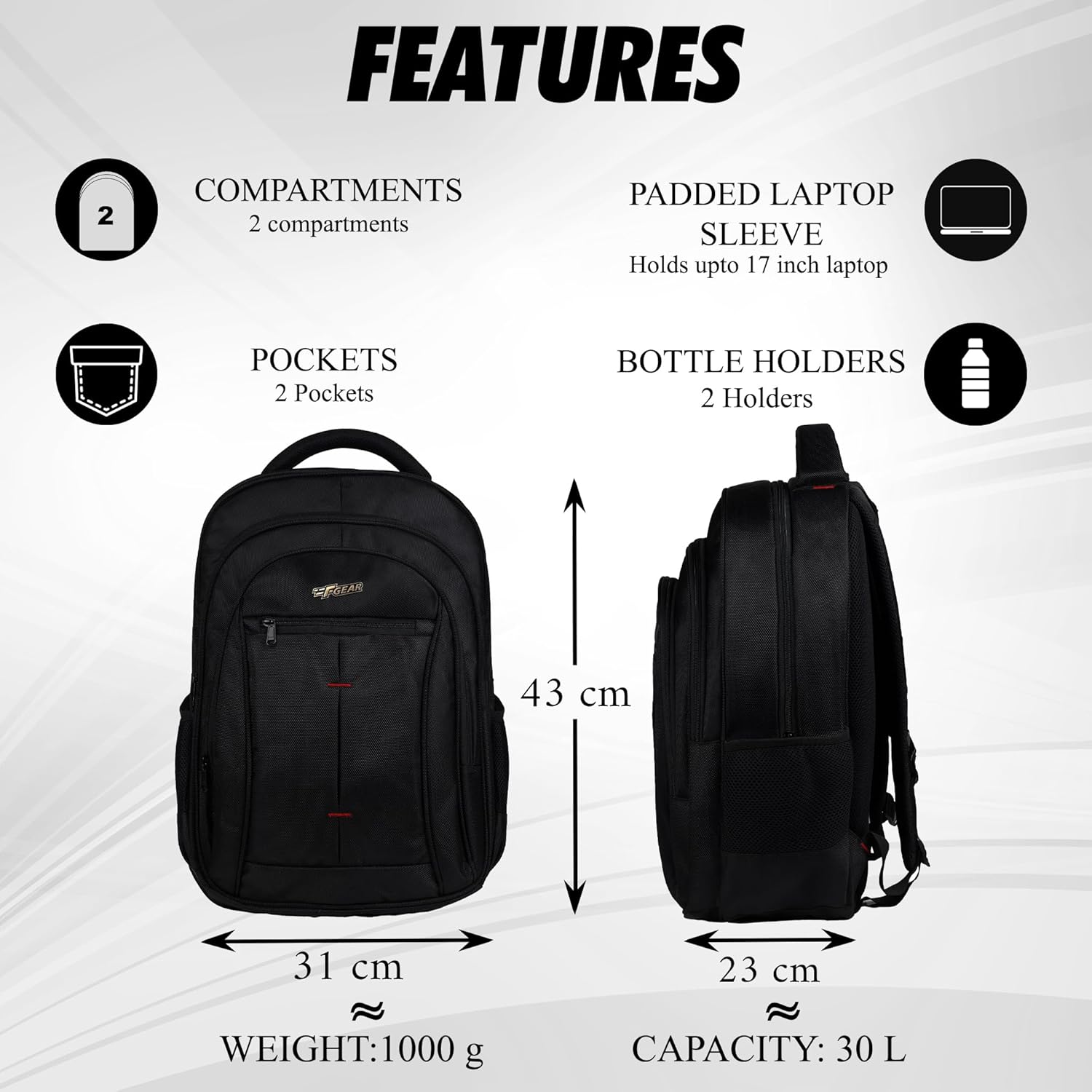 A high quality laptop backpack designed for the urban outdoor requirements, gusseted front organizer compartment for accessories, side mesh pockets for water bottle. Suave, sophisticated and comfort are the highlights of this black laptop backpack. Padded laptop compartment which fits upto 15” laptop.