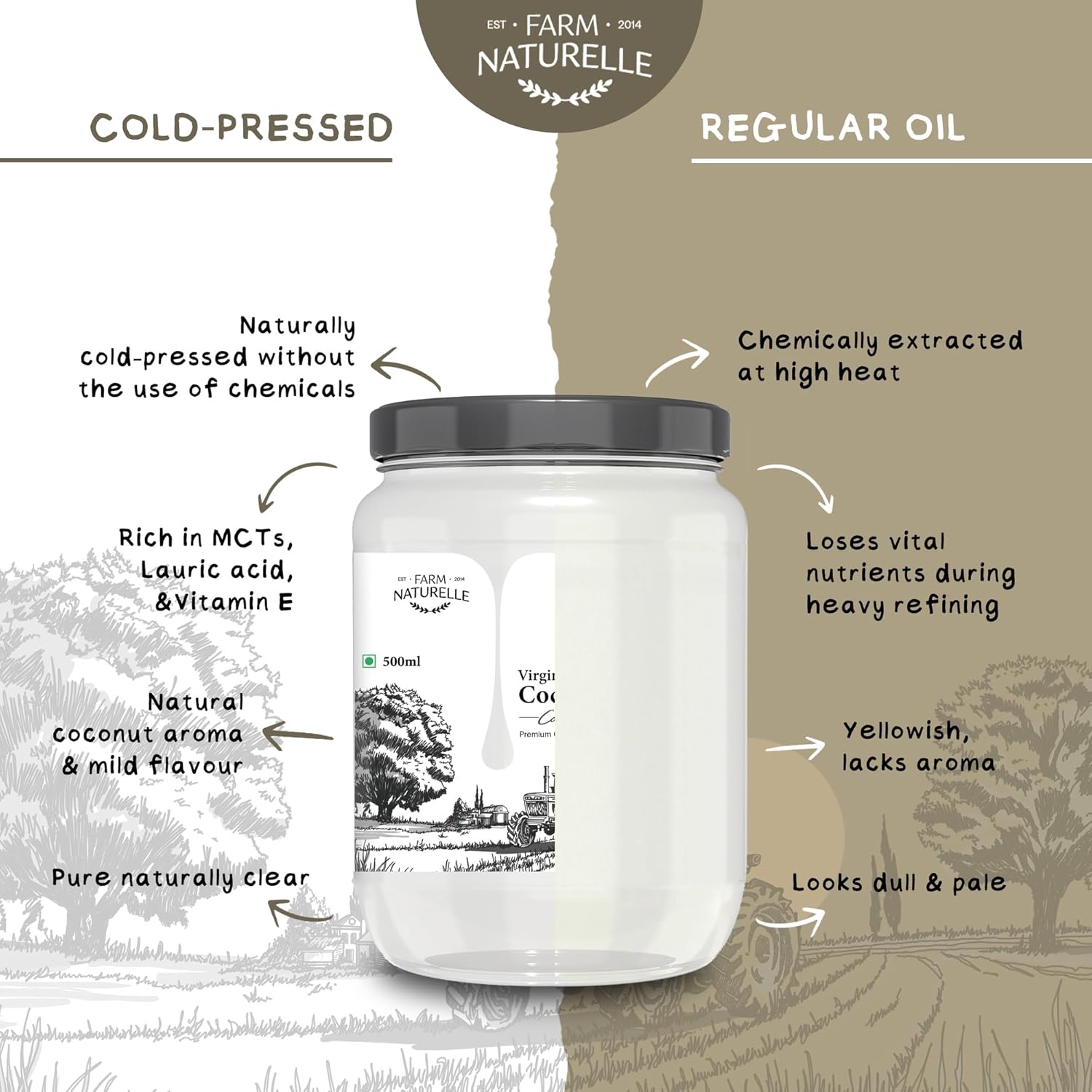 Multipurpose oil: suitable for cooking, baking, frying, oil pulling, hair nourishment, scalp care, and glowing skin routine.