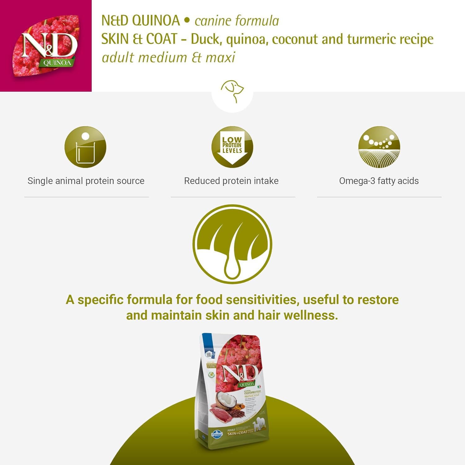 The use of a single animal protein source that is Duck in Skin & Coat diet helps against food intolerance and allergies already known against other more common protein sources.