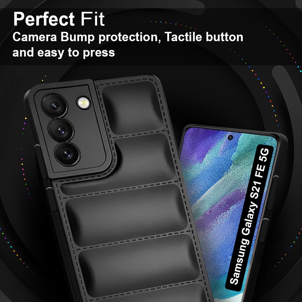 Fashionury Back Cover for Samsung Galaxy S21 FE 5G | Compatible for Samsung S21 FE Back Cover | Matte Soft Case | Liquid Silicon Case | Puff Case for Samsung S21 FE 5G with Camera Protection | (Black)