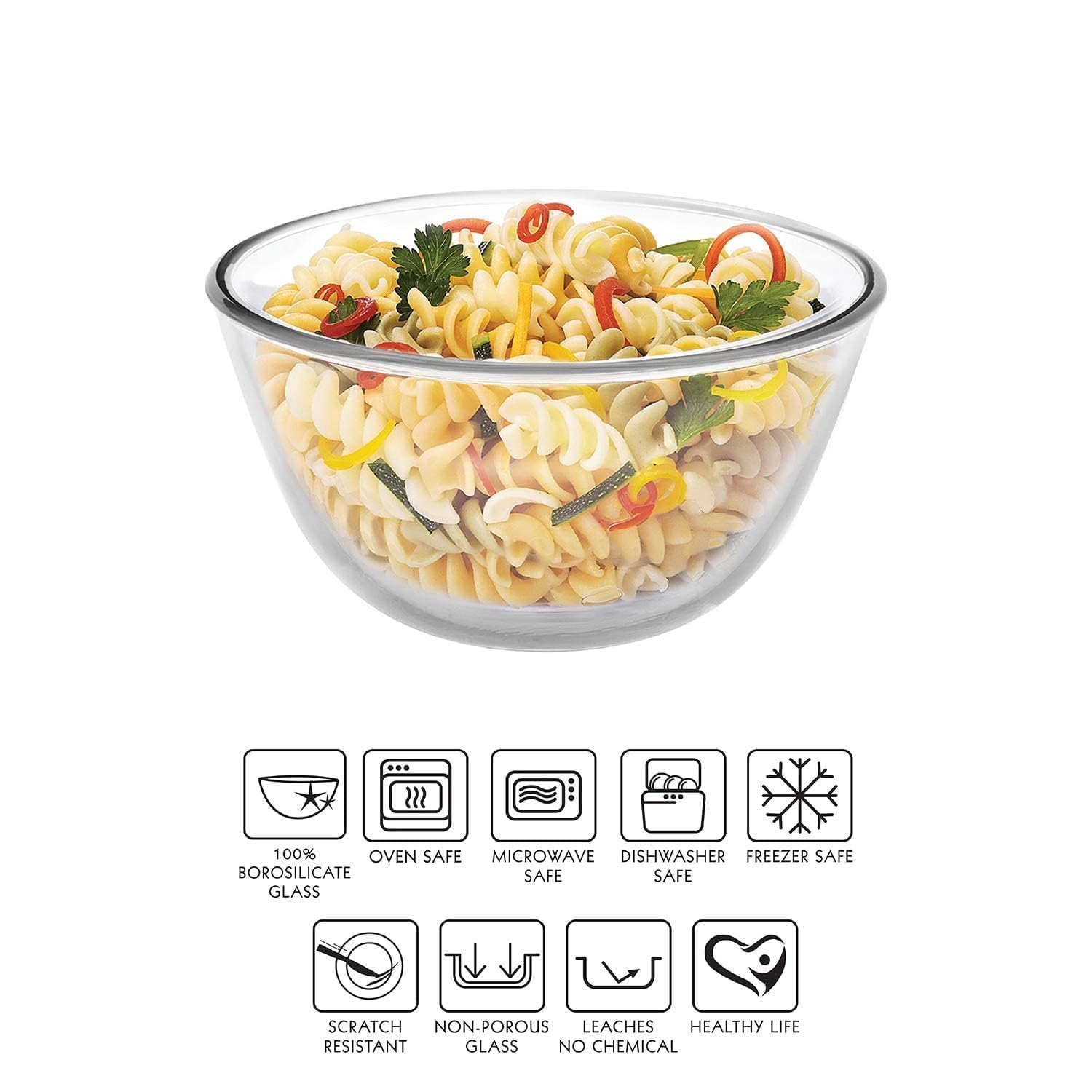 EVERYDAY USE: High-quality borosilicate glass mixing bowls gives you a peace of mind when managing your food, resists stains and odors. Worry less about scrubbing hard to get rid of stains or any funny smells.