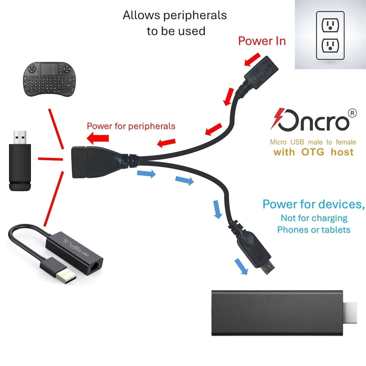 FUNCTION : Can provide both power & OTG for TV Stick, PlayStation Classic, Google Chrome cast, Raspberry Pi Zero, NES N64 Nintendo devices and many other streaming media players powered by a micro USB charging cable.