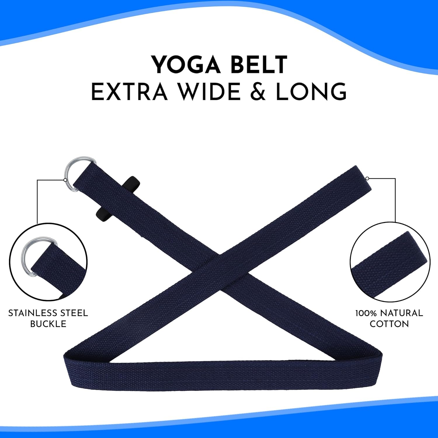 Fitness Mantra® 8.5 Feet Premium Cotton Yoga Belt for Women and Men |Adjustable D-Ring Strap for Stretching, Yoga, Pilates, Physical Therapy & Fitness |Durable & Anti-Slip Quality| Blue|