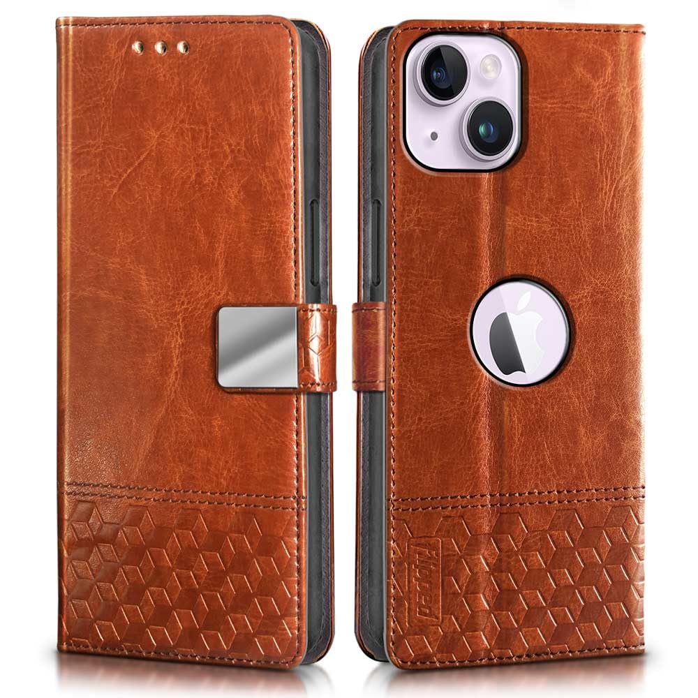 Compatible Devices: Hand-stitched Dual Design flip cover for iPhone 14.