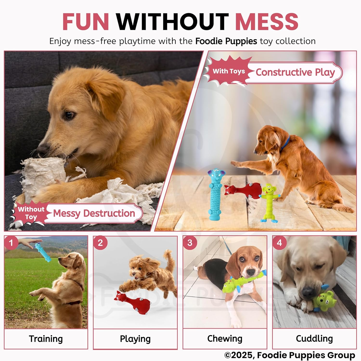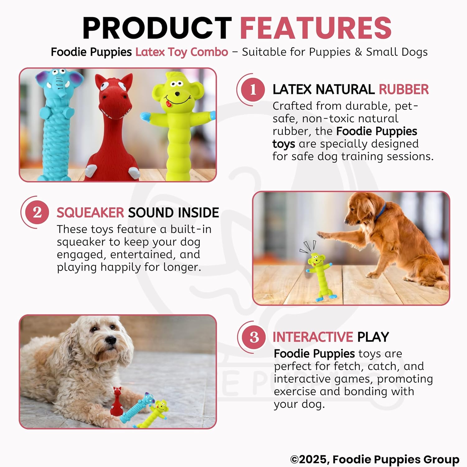 [NATURAL LATEX RUBBER]: Made from high-quality natural latex materials, non-toxic & non-harmful, safe for your pets to chew and play. These toys have a soft-touch texture that dogs love. No toys are indestructible; only supervised play, discard and timely replacement of frayed or worn toys.
