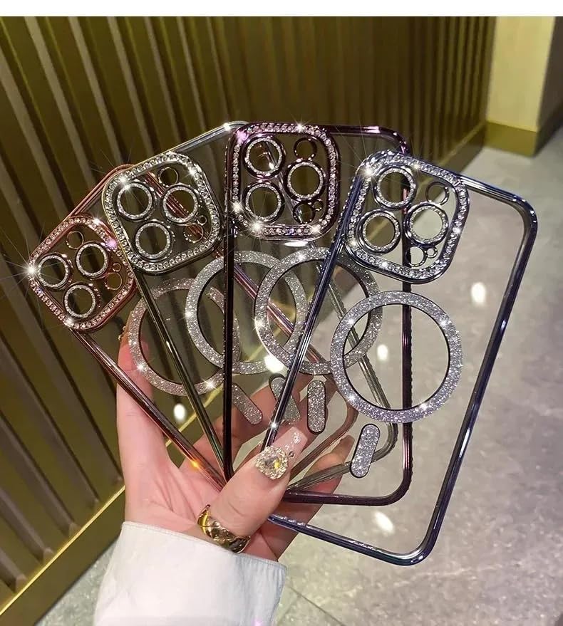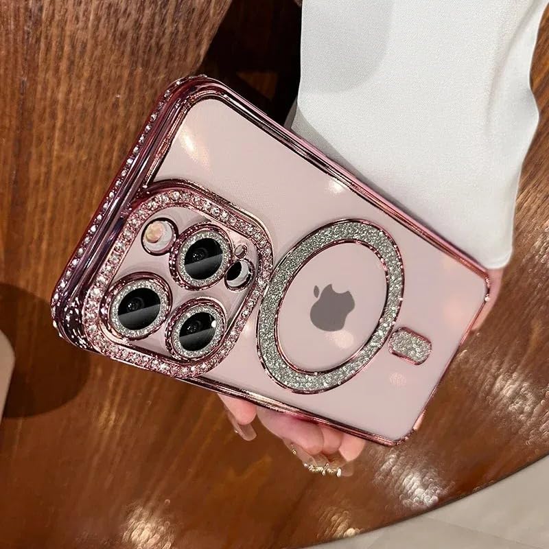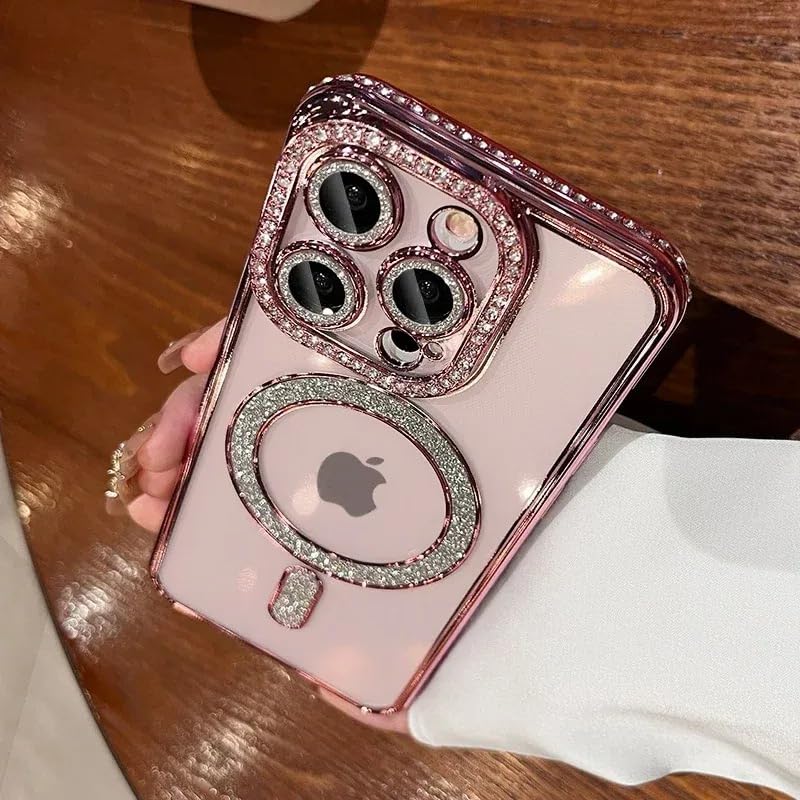 Apurb Store for iPhone 16 Pro Max Compatiable with magnetic Magsafe, support wireless charging Full lens camera protector avoid strach Shockproof drop protection Glitter bling rhinstones sparkly Higher than the camera design, protect the camera from being scratched.Slim soft TPU lighweigh