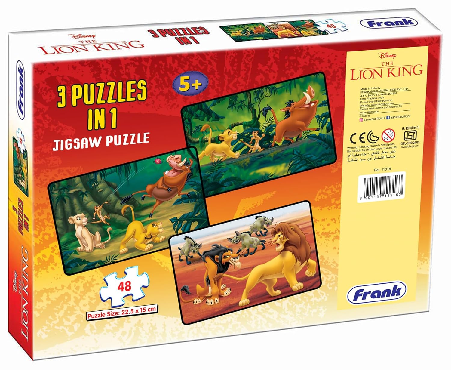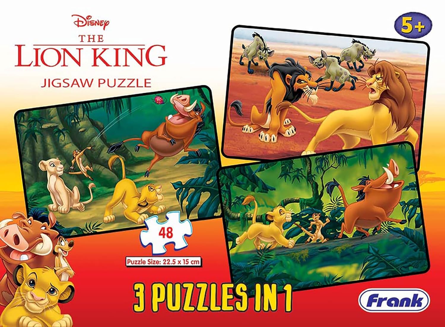 About: The Frank Disney The Lion King 3 in 1 Jigsaw Puzzle is designed to provide kids with an engaging experience, enhancing skills like focus, memory, hand-eye coordination, and cognitive development through interactive play.